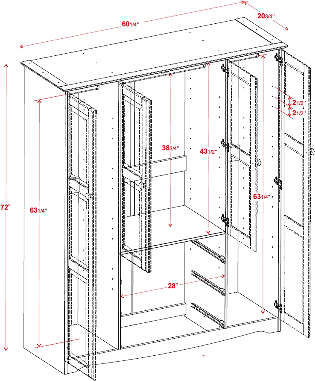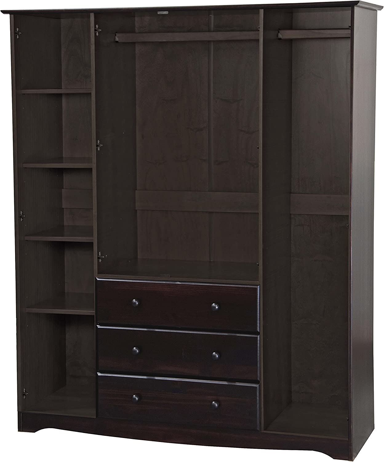 Palace Imports 100% Solid Wood Family Wardrobe/Armoire/Closet, White. 3 Clothing Rods Included. NO Shelves Included. Optional Shelves Sold Separately. 60.25" w x 72" h x 20.75" d
