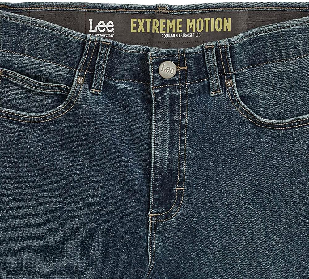LEE Men's Performance Series Extreme Motion Regular Fit Jean. Made with extreme flexibility in mind, this style is an all-American favorite loaded with our best-selling Extreme Motion features. Extreme stretch fabric makes bending, crouching, stretching and moving supremely comfortable. Athletic waistband comfortably flexes as you move and a hidden gussets offer extra room where men need it most. Just like our founder,  H. D. Lee, our passion is helping can-do people do more. We are committed to designing clothing that conforms to your body, allowing you to move through life freely. We help you chase the things that bring you joy and laughter. The things that make you fearless and hopefully because your passion is what makes you unique. And what moves you, moves us. Move your Lee.