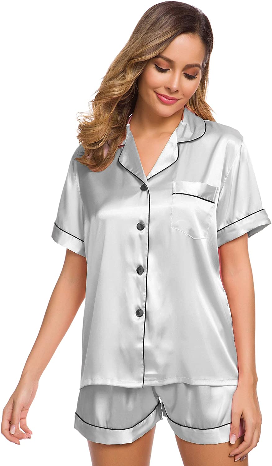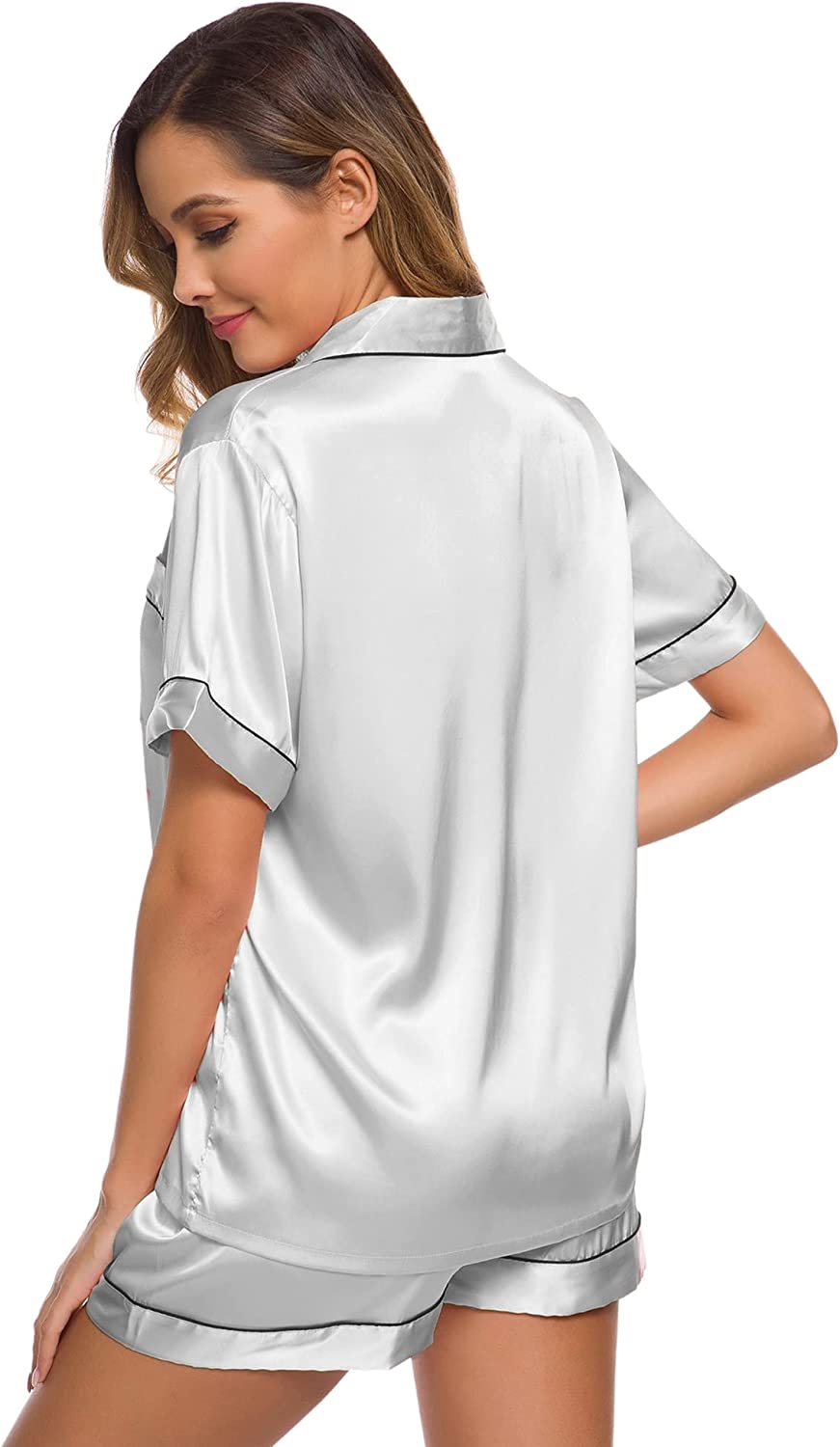 SWOMOG Womens Silk Satin Pajamas Set Two-piece Pj Sets Sleepwear Loungewear Button-Down Pj Sets