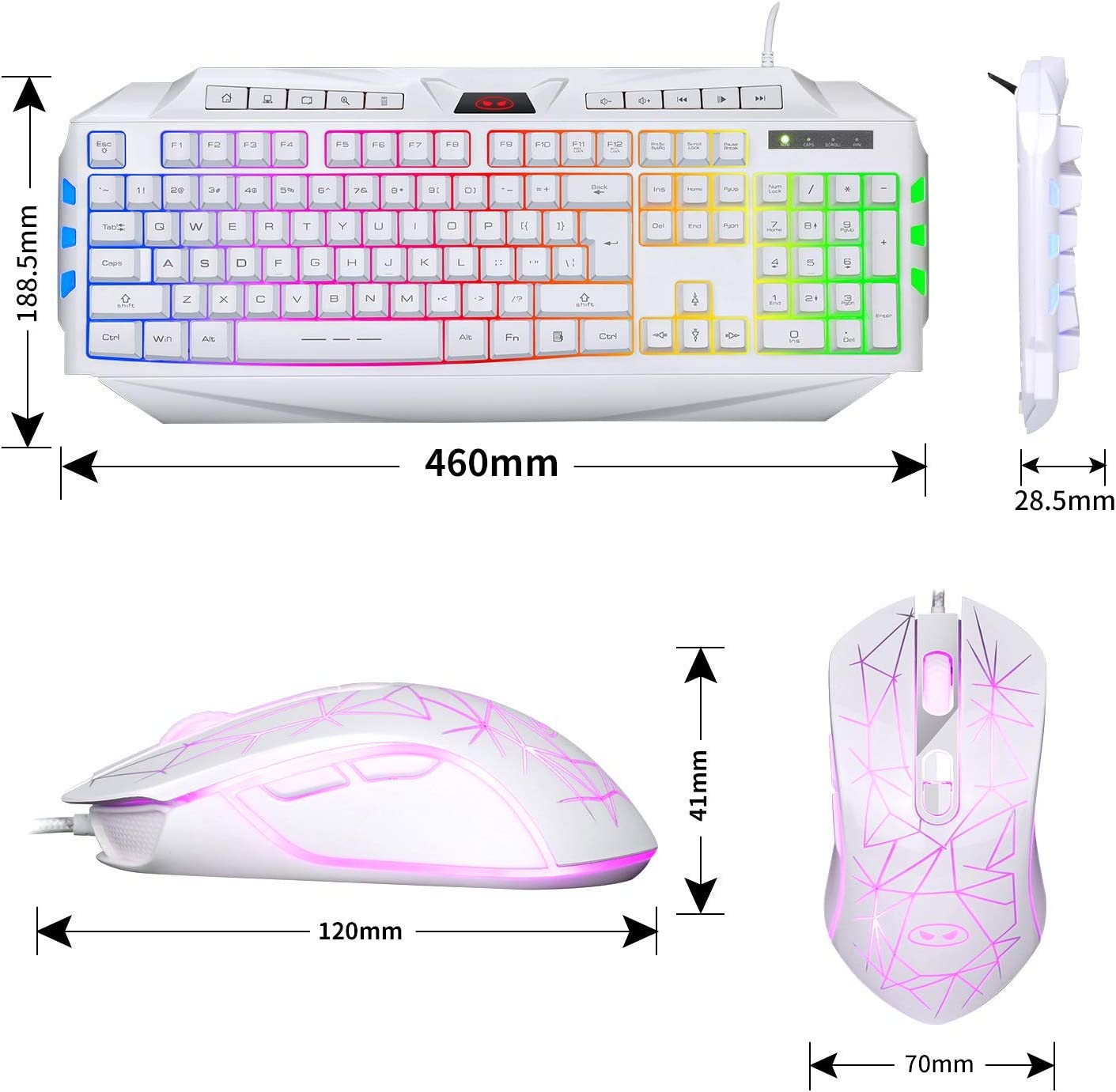 RAINBOW BACKLIT-Rainbow backlit gaming keyboard&mouse, seven colors breathing backlit mouse. Ergonomic design for wired keyboard and mouse, comfortable to operate.