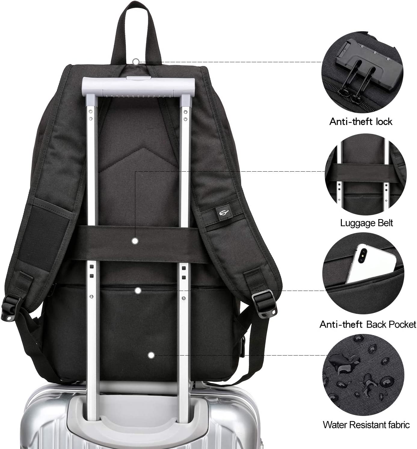 • ✈ SAFETY & PRACTICAL - This antitheft business travel computer bag With Fixed Password Lock and Durable Metal Zippers ,hidden anti-theft pocket on the back ,it is safe guaranteed for protecting your valuable items inside. No need to worry theft easily opening your backpack when you are travelling or lining up.A LUGGAGE STRAP allows backpack fit on luggage/suitcase, slide over the luggage upright handle tube for easier carrying.
