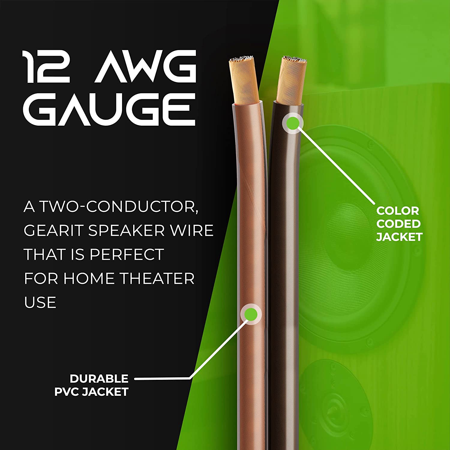GearIT Pro Series 12AWG Speaker Wire, 12 Gauge Speaker Wire Cable (100 Feet / 30 Meters) Great Use for Home Theater Speakers and Car Speakers, Transparent Black/Clear