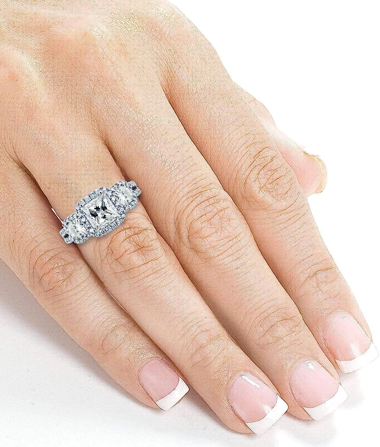 Kobelli 2 4/5-CTW Princess Moissanite Halo 3-Stone Engagement Ring 14k White Gold