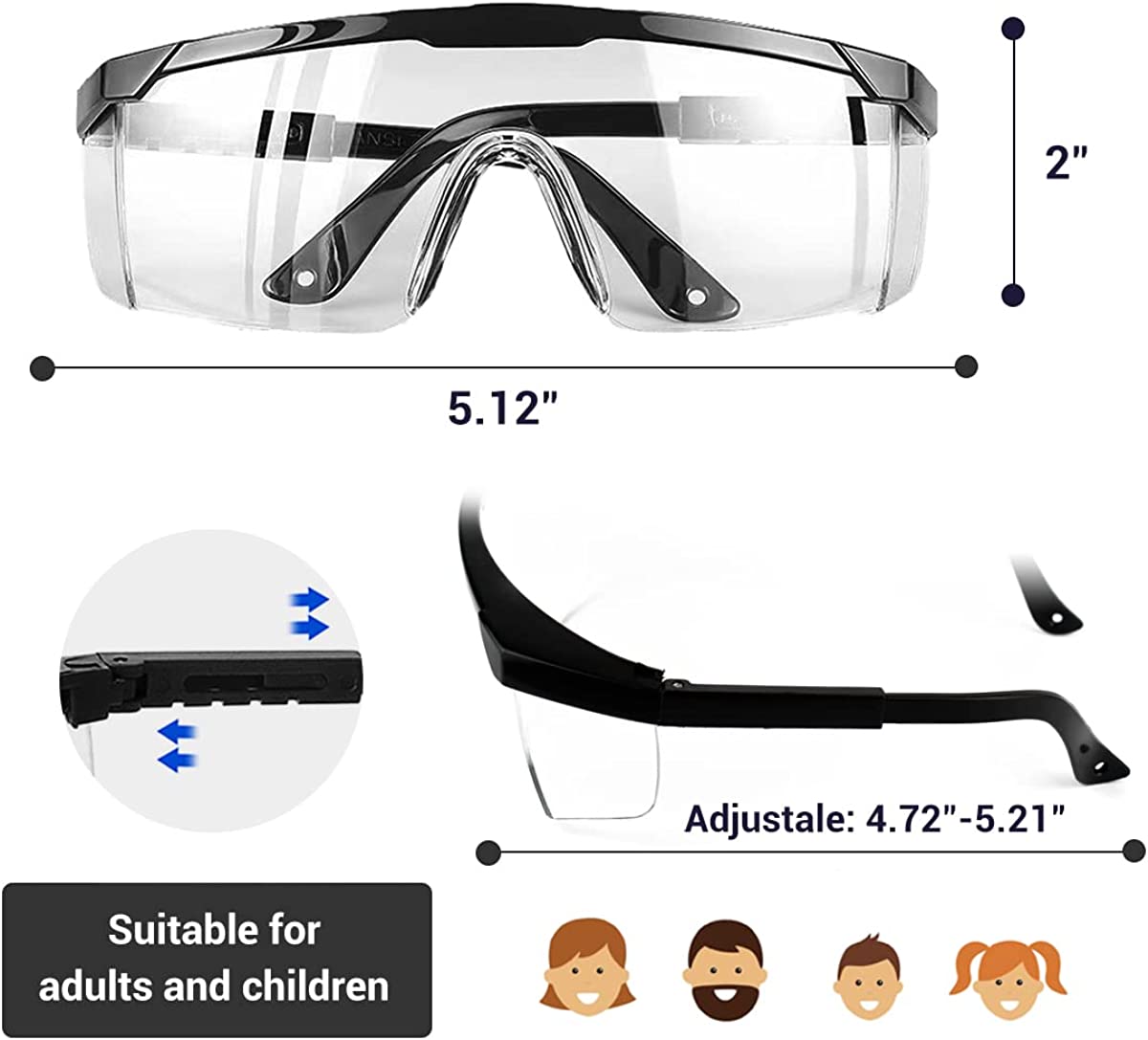 Adjustable goggles temple: You can pull out the bottom of goggles leg/ ear frame, adjust the length to fit your face.
