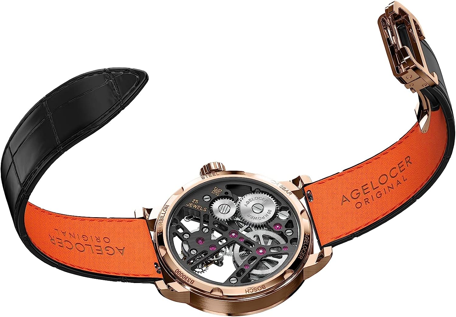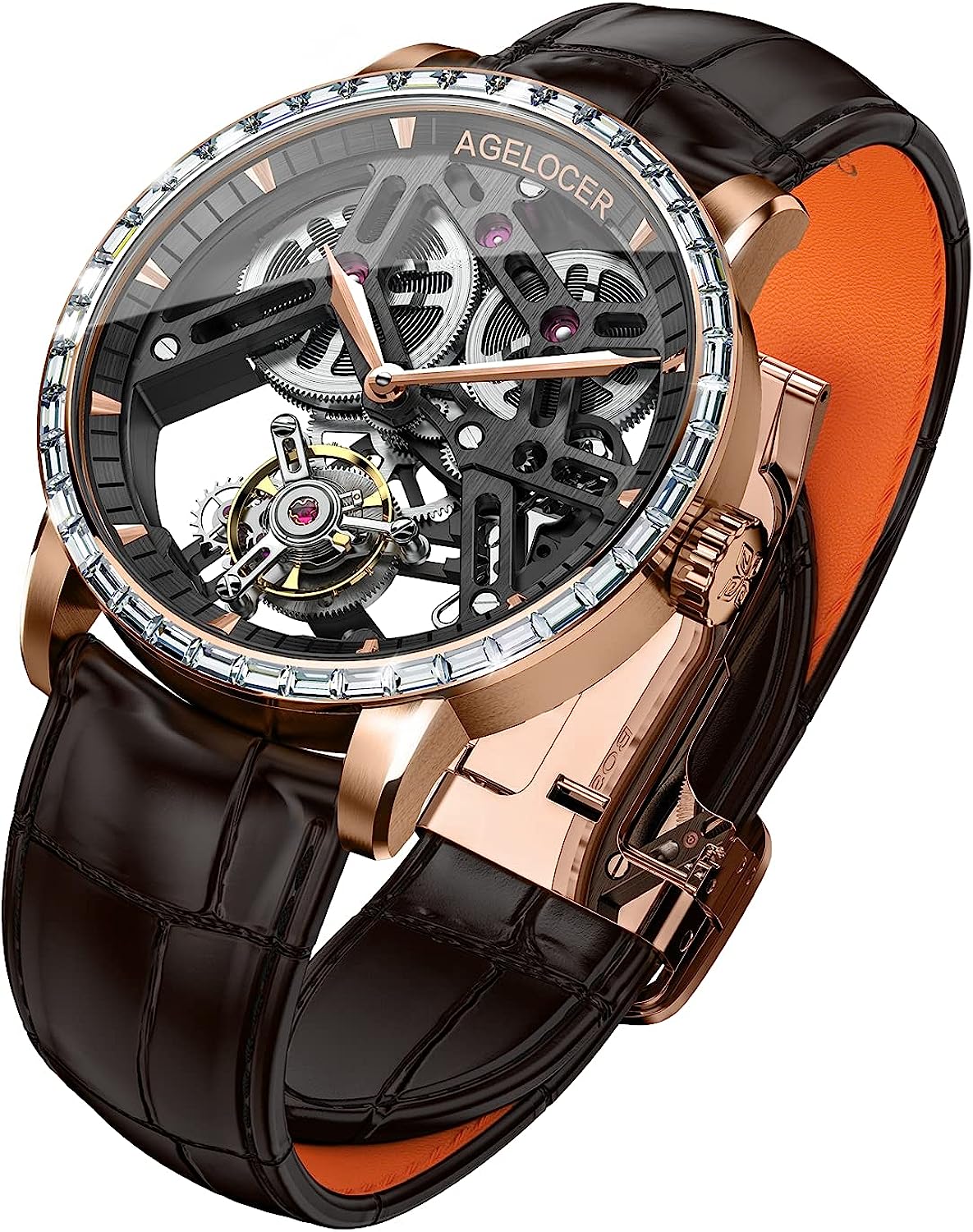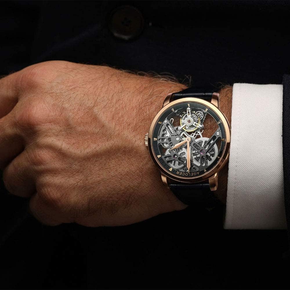 AGELOCER Mens Watch Tourbillon Double-Sided Hollow Self Winding Mechanical Leather Luxury Watches for Men