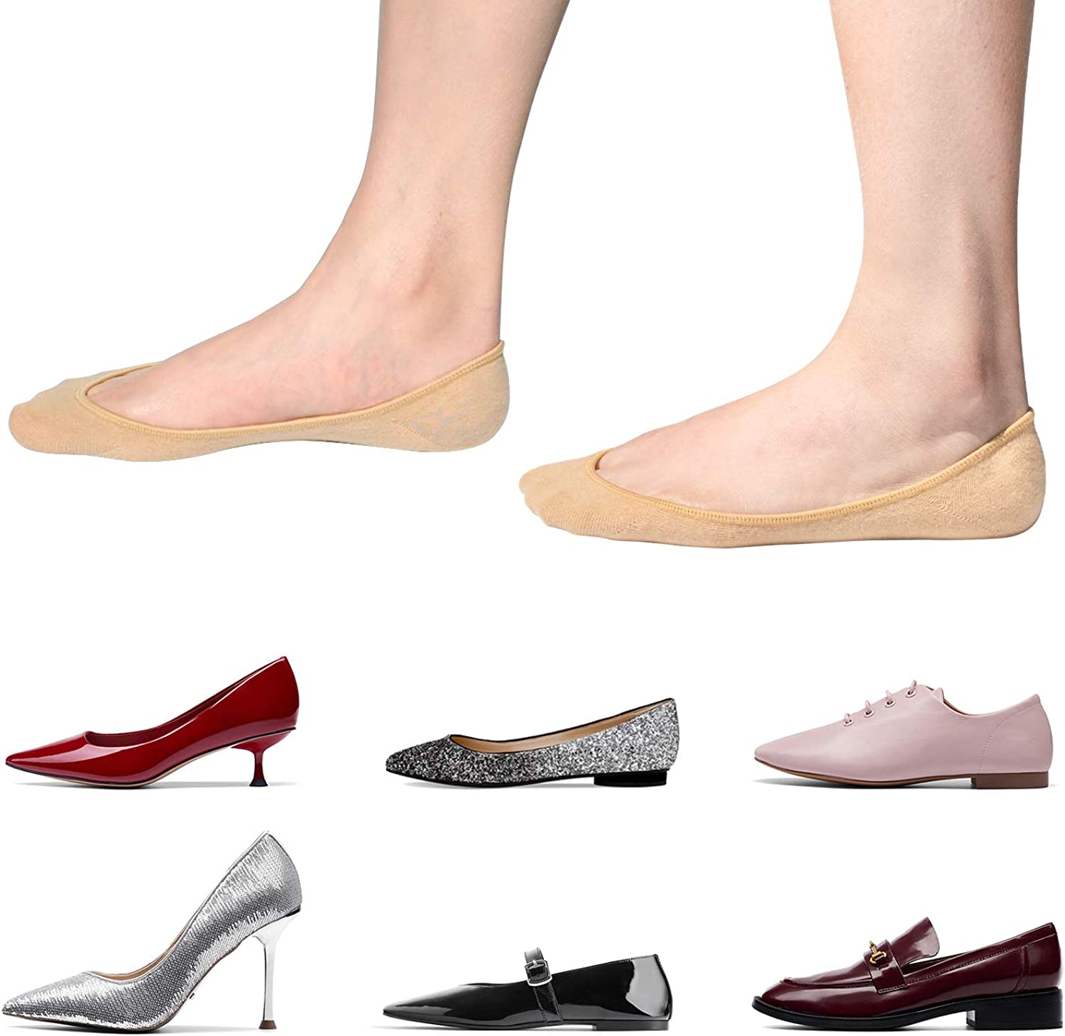 SIXDAYSOX No Show Socks Women for Flats 4 to 8 Pack Non Slip Invisible Ultra Low Cut Socks Shoe Size 5-8/9-11