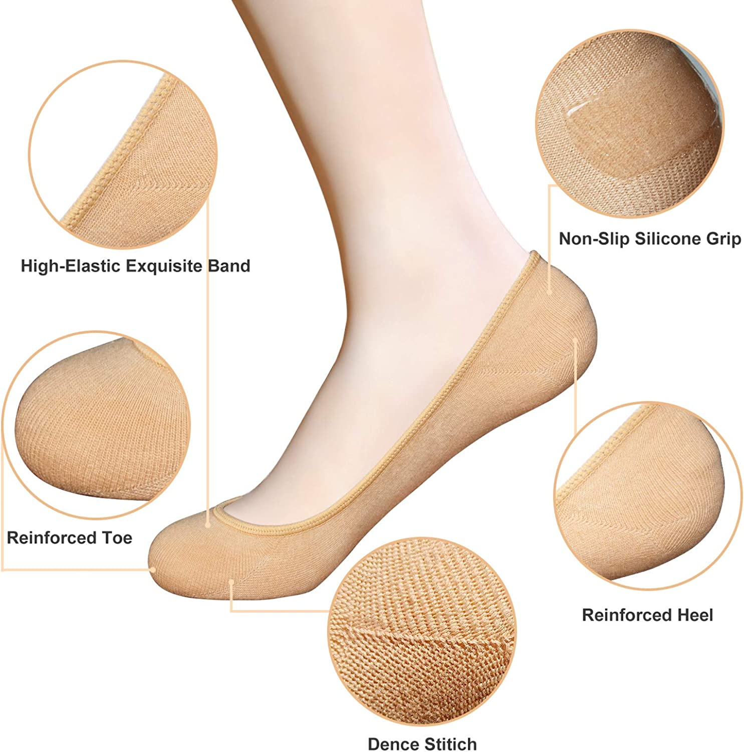 • 【Specially Designed for Women】The non-slip silicone at the heel prevents socks from slipping down.The low-cut shoe design makes it invisible. No show and non slip socks with basic colors, which are super suitable for a variety of lady's shoes, such as flats, heels, sneakers, and loafers.