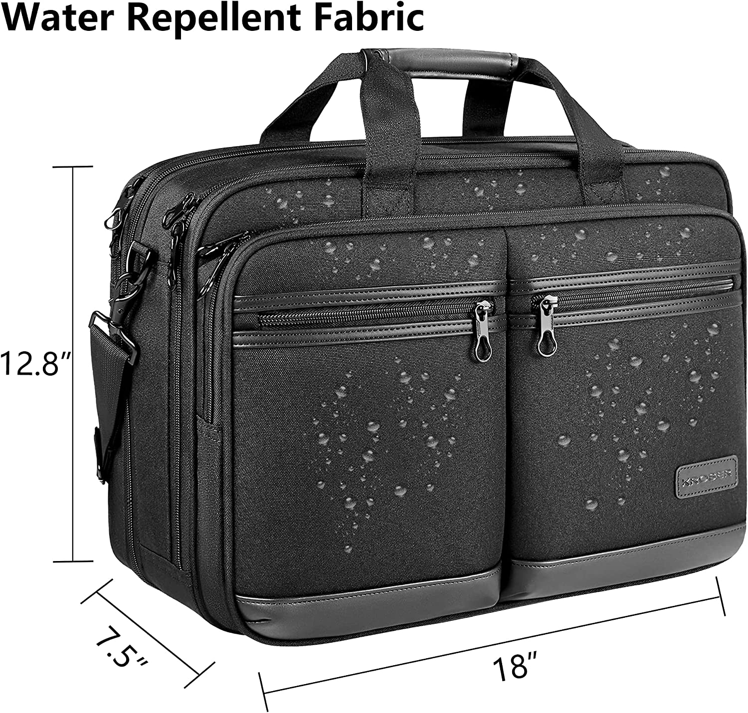 • This premium laptop briefcase is made of high quality environment-friendly fabric which is durable and water-repellent. Dimensions: 18”x12.8”x7.5”; Weight: 2.88 LBS.