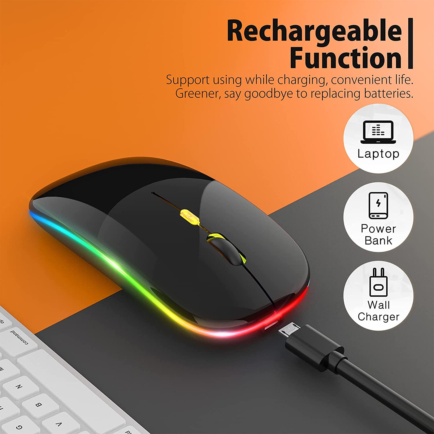 【Rechargeable Optical Mouse】Built-in durable rechargeable battery, it can be easily charged using the included USB cable without replacing the battery. Just 2 hours charging, you can use it about 7-15 days. Standby time is very long, energy-saving features, automatic sleep mode and wake-up mode are installed to save energy. Turn off the mouse LED light when not in use to save power.