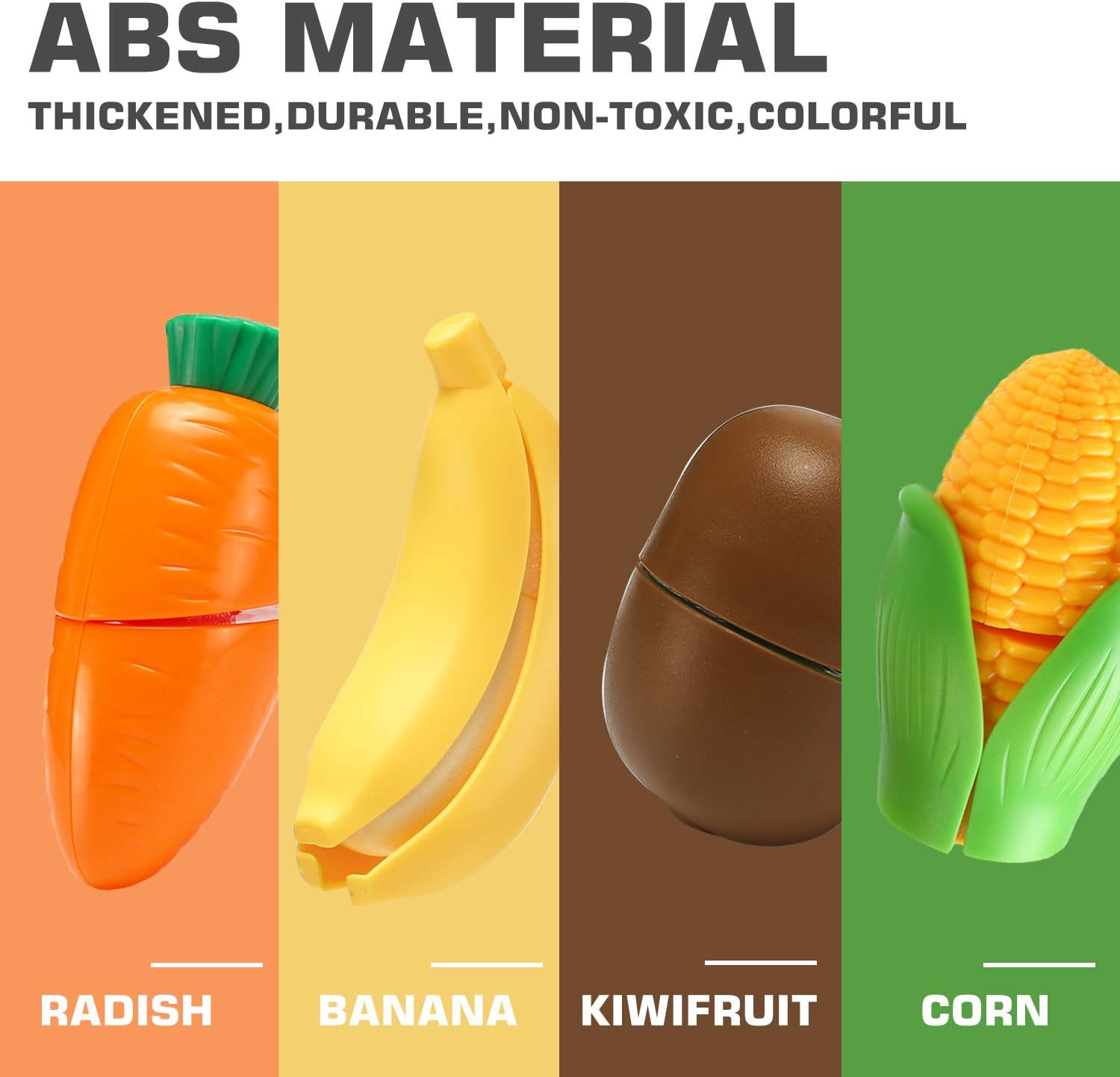 Realistic Design: Match pieces together easily, which can be cut and played repeatedly. For children, fruits and vegetables are easy to cut.The "slicing" noise accompanying the cutting can bring endless fun to the children