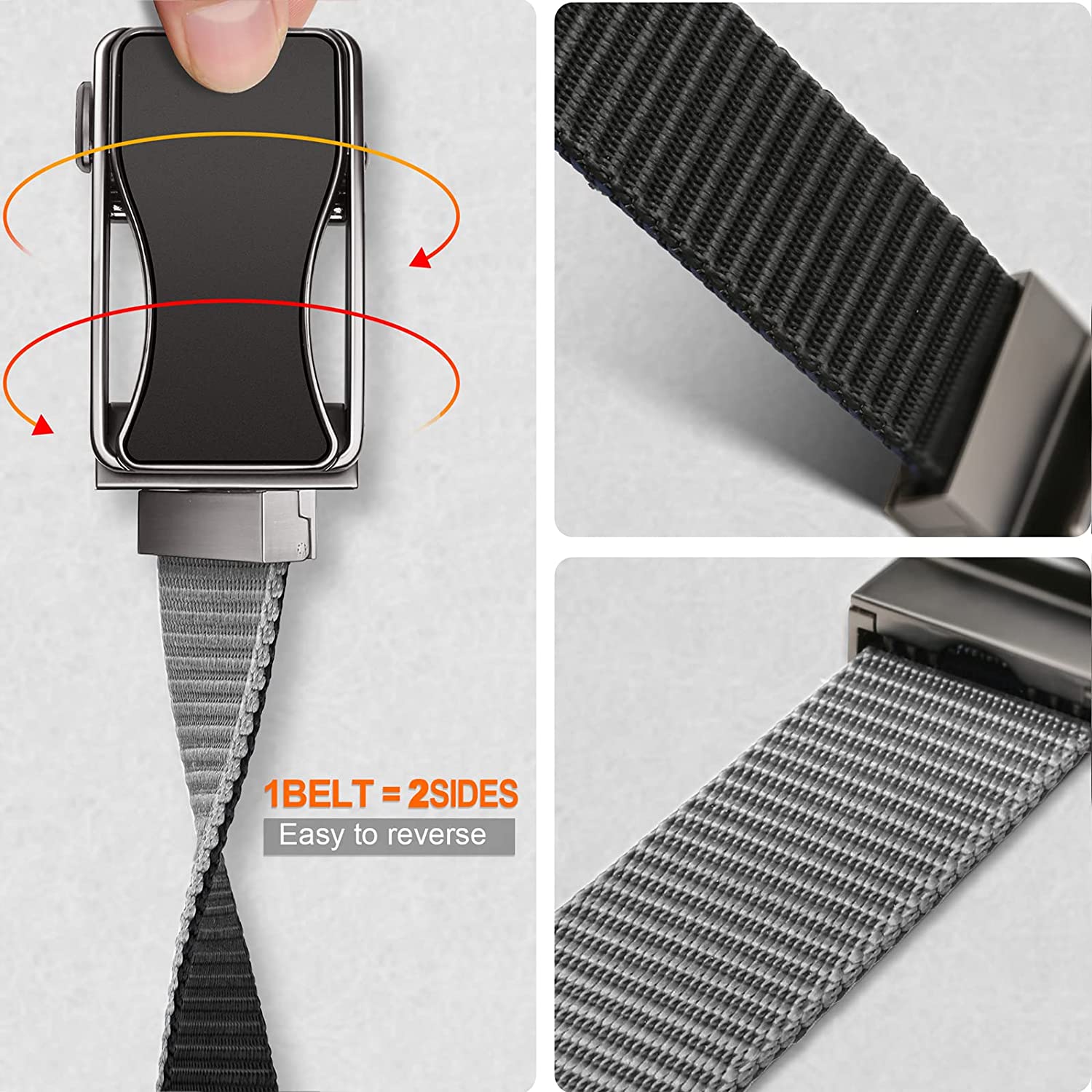 BULLIANT Mens Ratchet Belt Reversible,Web Nylon Belt for Men Casual Golf Dress Pants,One Belt Rotating for 2 Colors