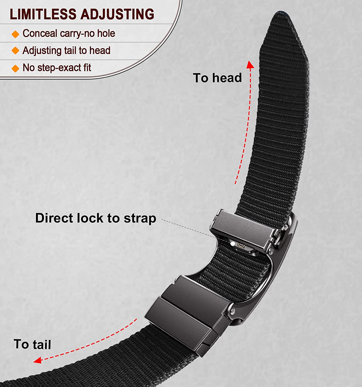• Innovative Reversible Ratchet Nylon Belt for Men,Length Adjsutable by Cutting to Fit;
