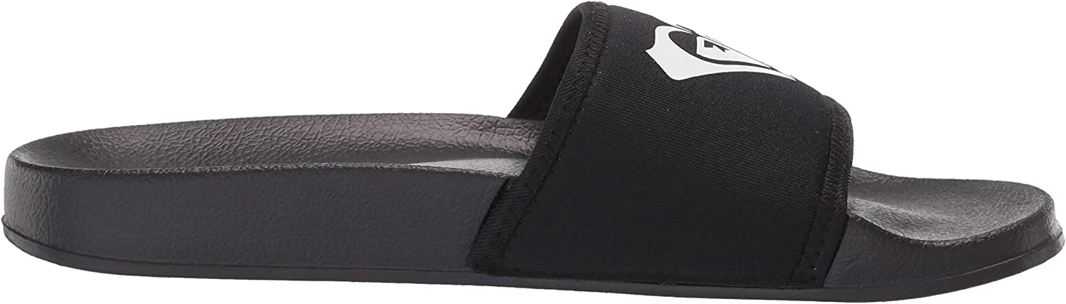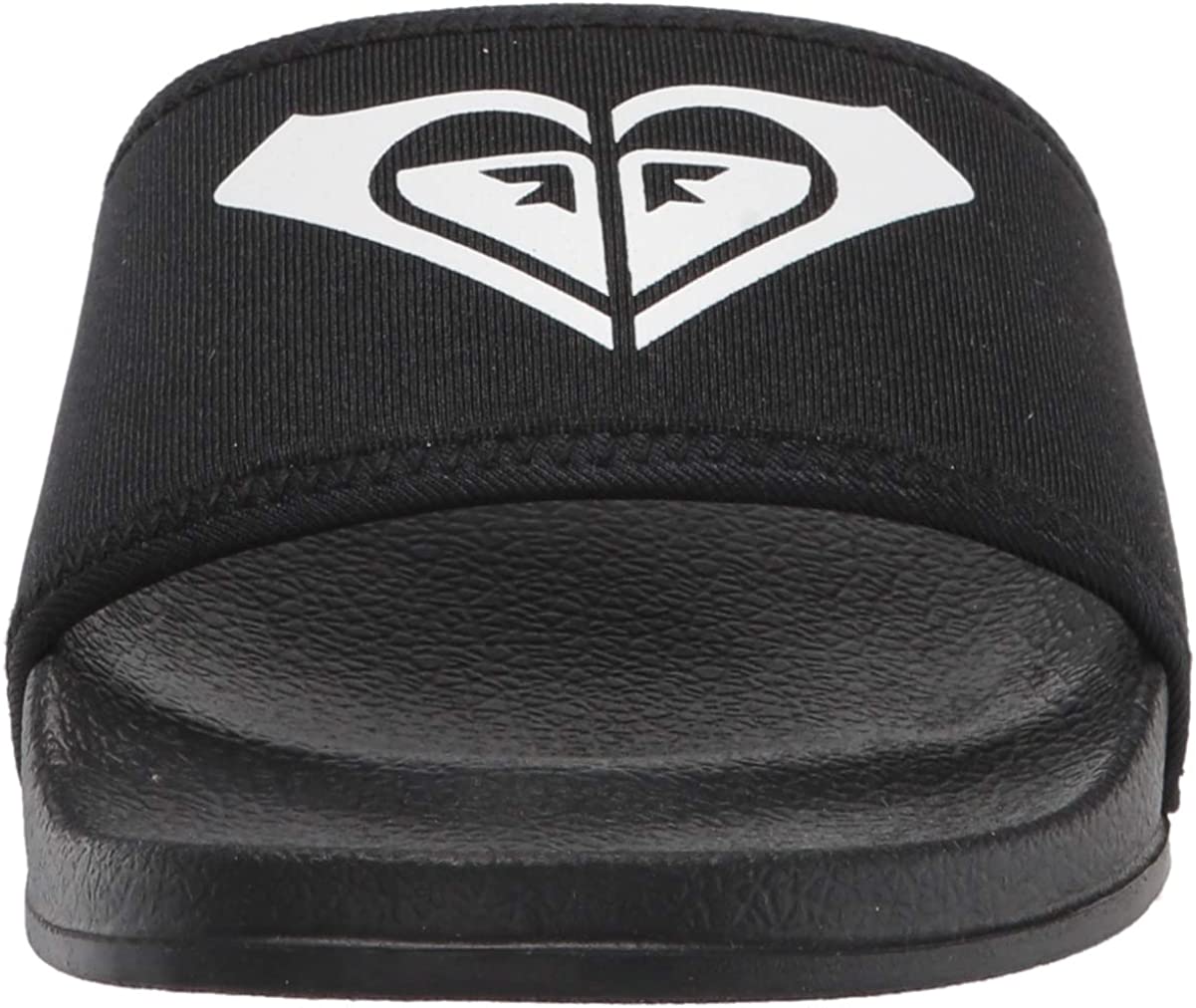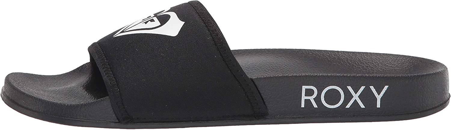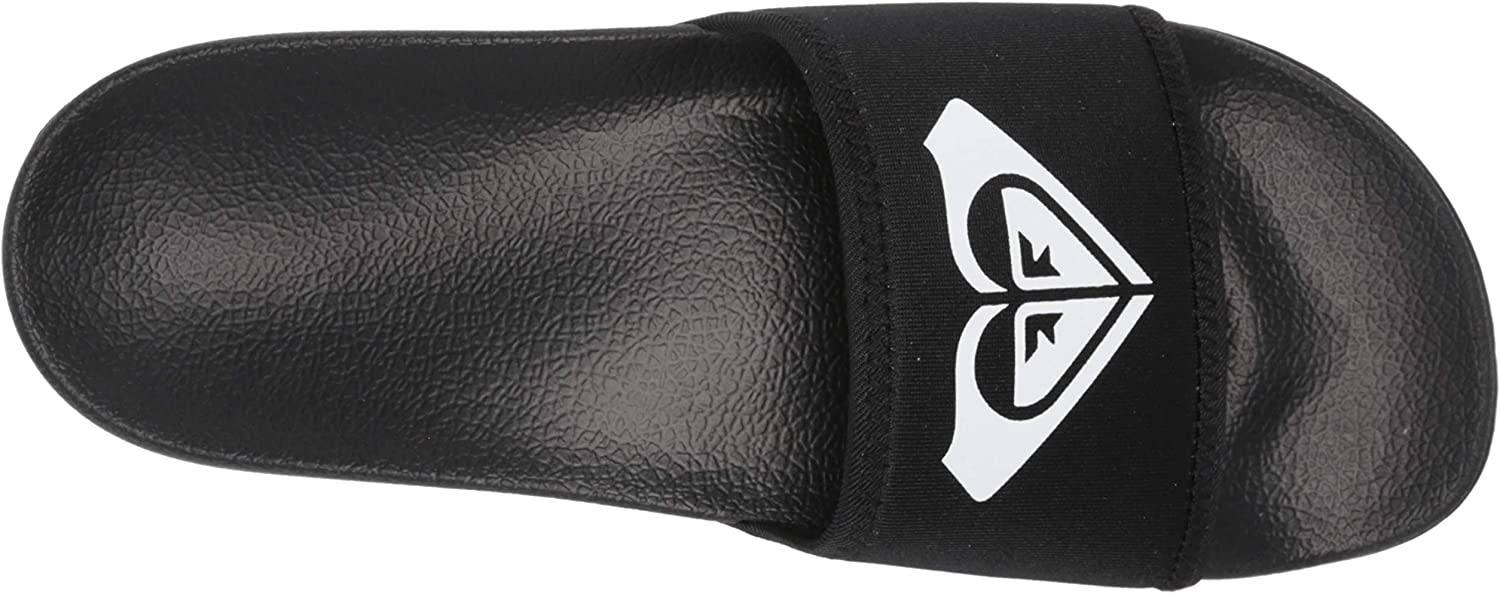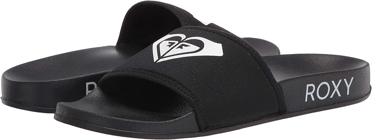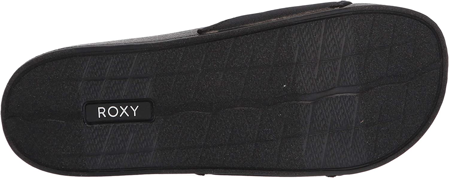 Textile rubber upper with embossed Roxy script, soft padding, nylon lining, molded eva footbed, rubber outsole, boxed with hanger.