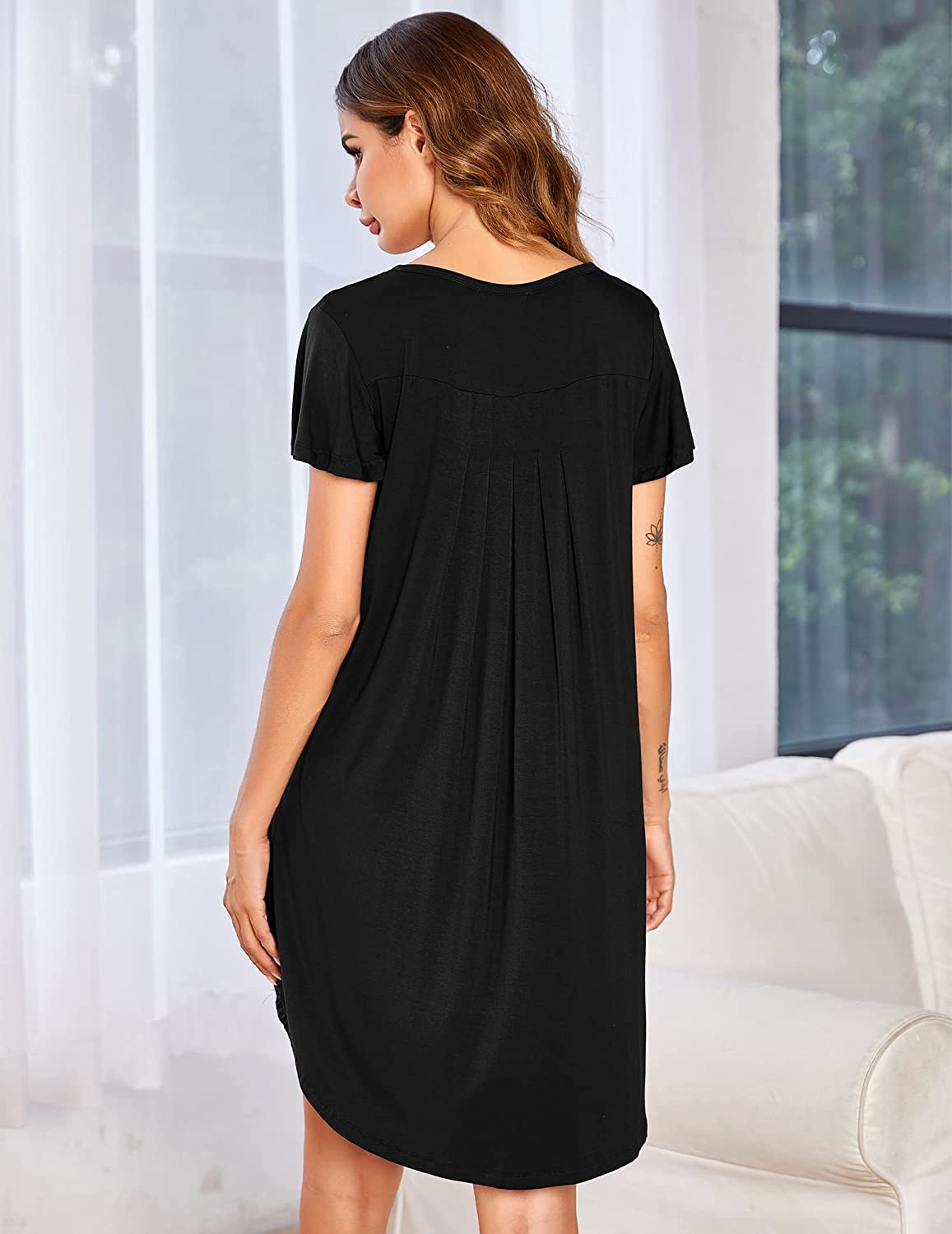 • ✿UNIQUE DESINGN: Womens nightgown is above knee length, round neck, short flare sleeve, irregular curved hem, classic special pleated design both on the front and back.