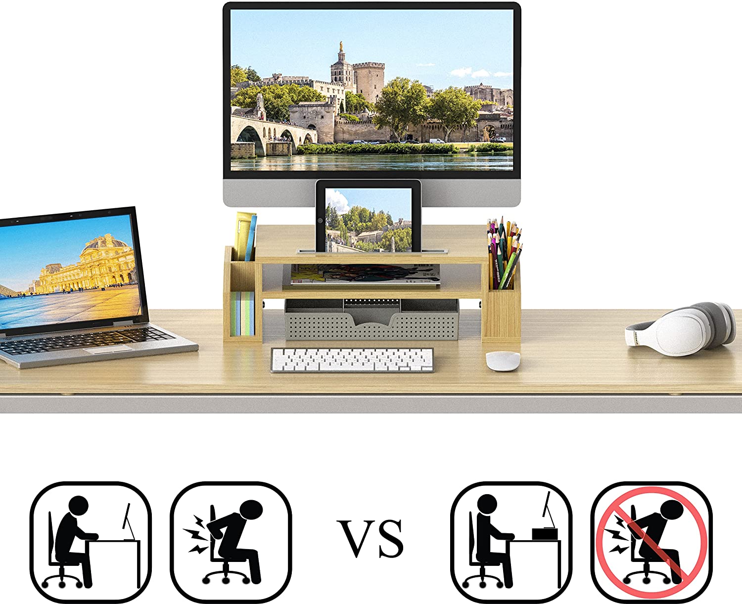 SimpleHouseware Desk Monitor Stand Riser with Adjustable Organizer Tray