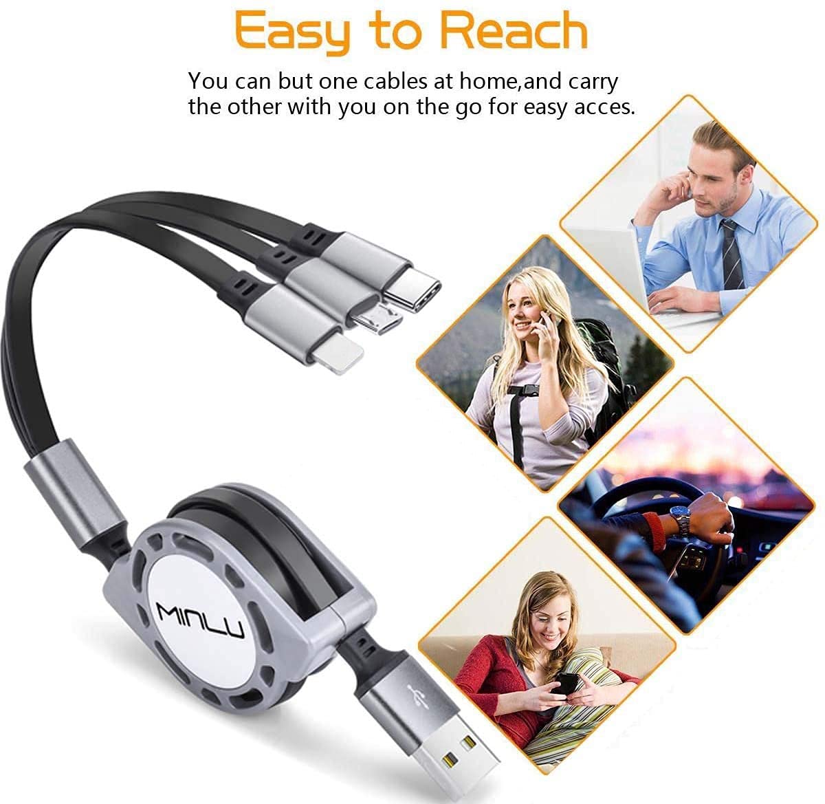 ● The durability you’ve come to expect from Minlu 3-in-1 Charger Cord—now with universal compatibility. With iP, USB-C and Micro USB connectors built-in, it’s the only cable you’ll ever need. Support to charger most of the mobile phones available on market.