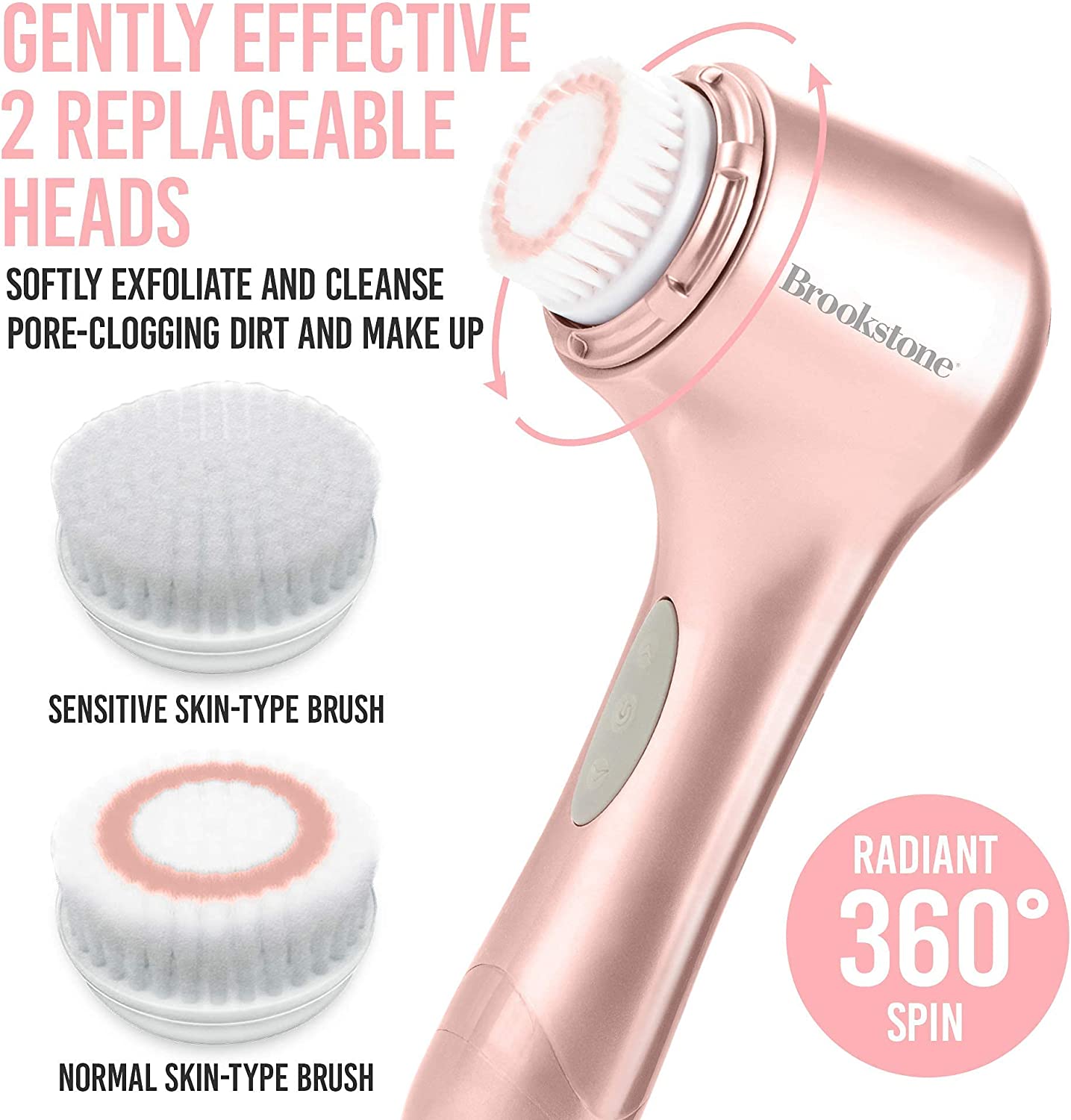 The Cleansing Facial Brush : Included in the box is our most popular rose gold face wash brush that has soft set brush and runs on AA batteries. Portable face brushes for cleansing and exfoliating remove the dirt and debris of the day without scratching your face. Ours comes with a handy additional interchangeable spin brush (included)
