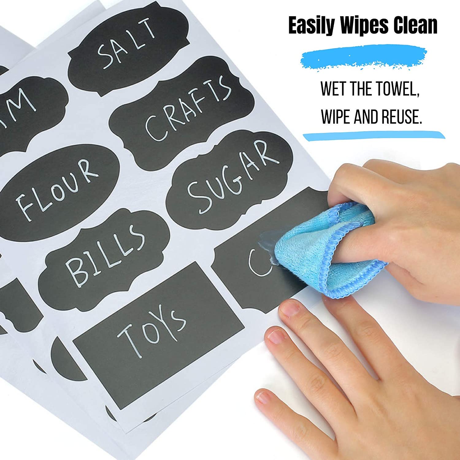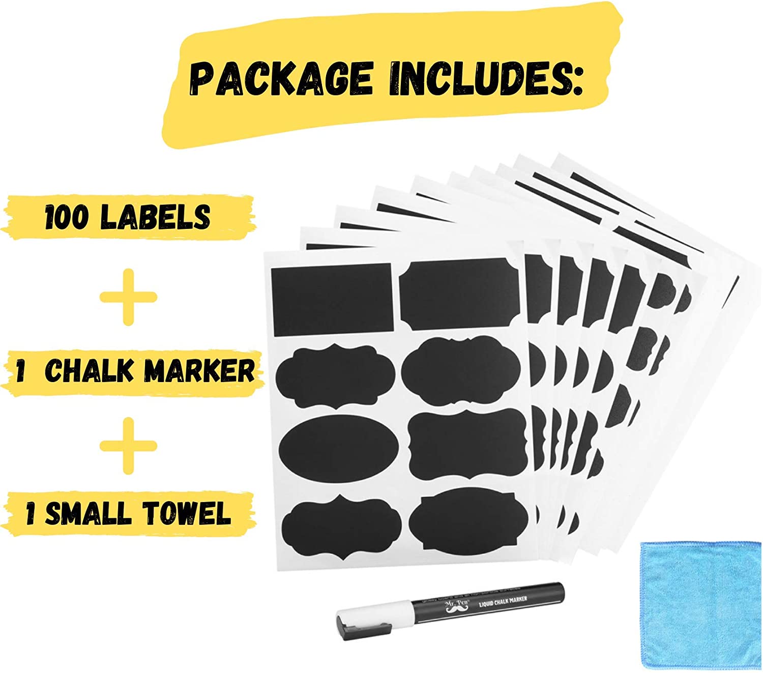 Mr. Pen- Chalkboard Labels, 100pc, Assorted Shapes, 1 White Chalk Marker and Small Towel, Labels, Label Stickers, Labels for Storage Bins, Sticker Labels, Bottle Labels, Food Labels, Jar Labels