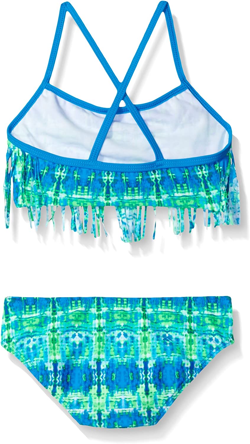 Kanu Surf presents our newest swimwear styles yet. Kanu, a surf and swim lifestyle brand, is well known for great prints and colors along with high quality functional apparel for the whole family. All of our girls swimsuits are made with a high quality nylon/spandex tricot fabric and are lined both front and back. All of our prints are available in multiple bodies many times with 1-pc or 2-pc options. Kanu bathing suits are great for the active athlete as well as for the recreational swimmer. Our Melanie fringe bikini sports a cool geo print. Available in all girls sizes 2 thru 16 so sisters can hit the beach scene as a team. Check out our many coordinating board shorts and rash guards to make a great set
