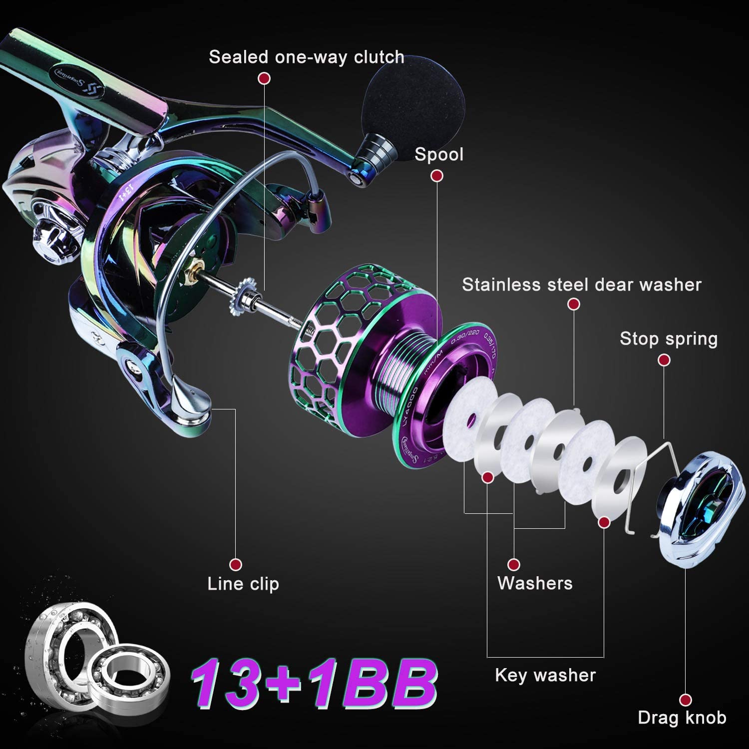 - SMOOTH and RELIABLE – 13 corrosion resistant smooth ball bearings and one instant stop one-way anti-reverse bearing give it ultra-smooth performance. Each reel features an exceptionally smooth, infinitely adjustable, multi-disc drag system that delivers up to 22 pounds of run-stopping drag power.This fishing reel is an awesome gift for experienced and beginner.