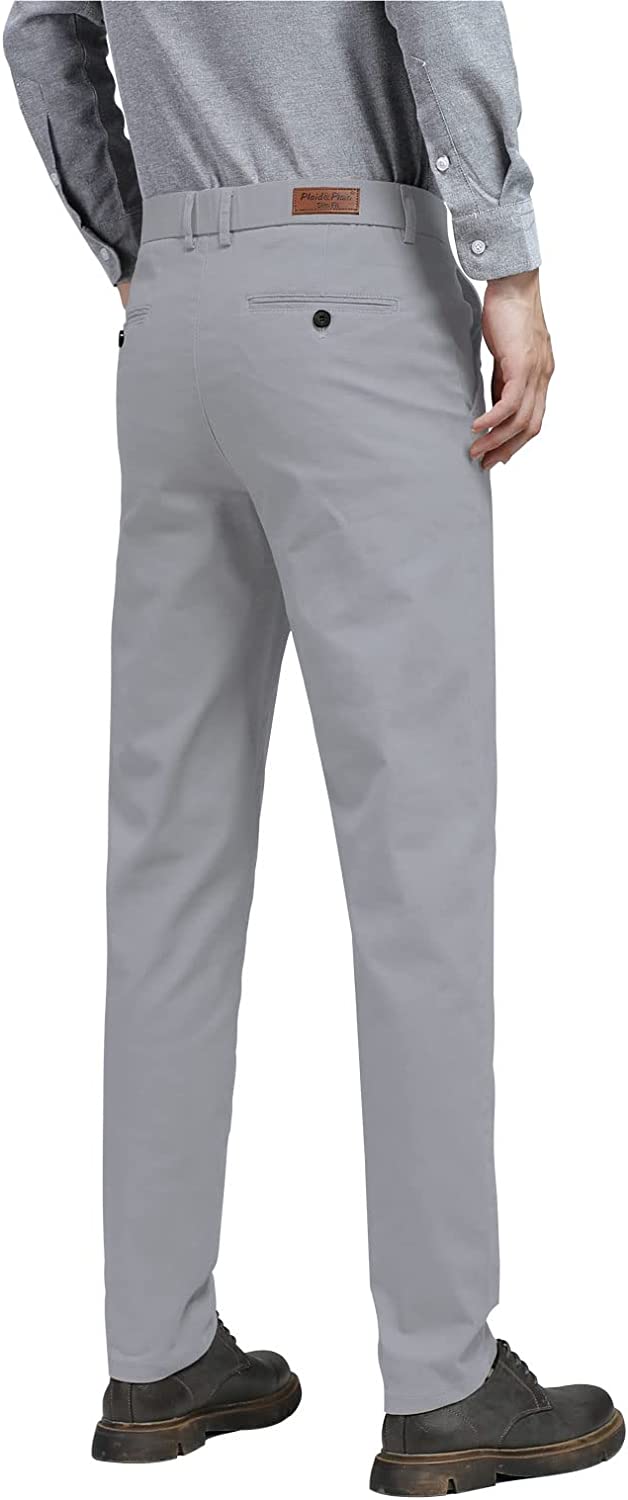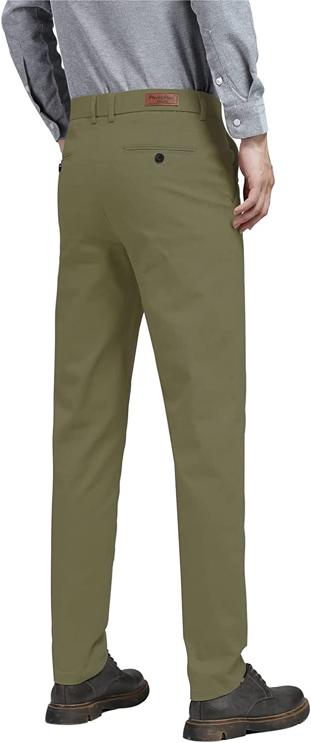 Plaid&Plain Men’s Slim Fit Khaki Pants Men’s Tapered Chino Pants