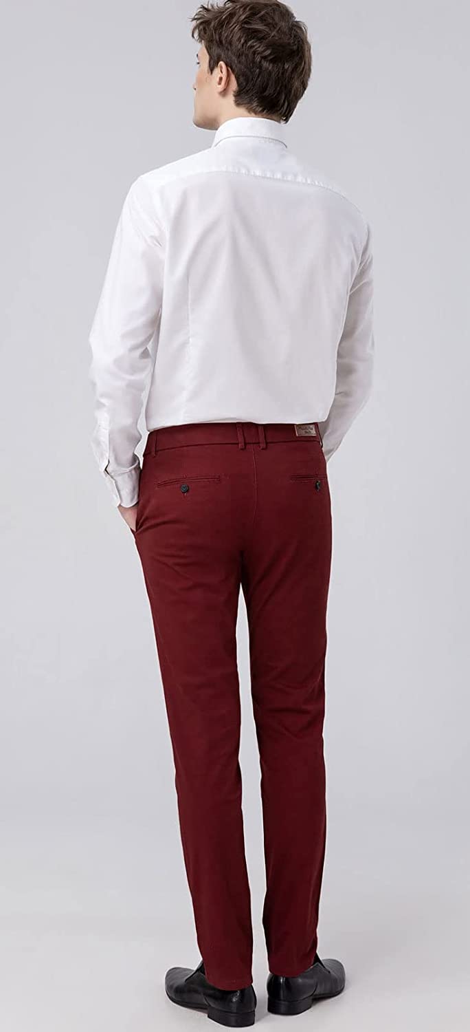 • Fit Type: Slim Fit. An elegant, trousers cut in a contemporary slim fit for men. Complete with a zipper fly closure, hand pockets at sides and double welt back pockets, the stretch chinos are a comfortable, classic choice.