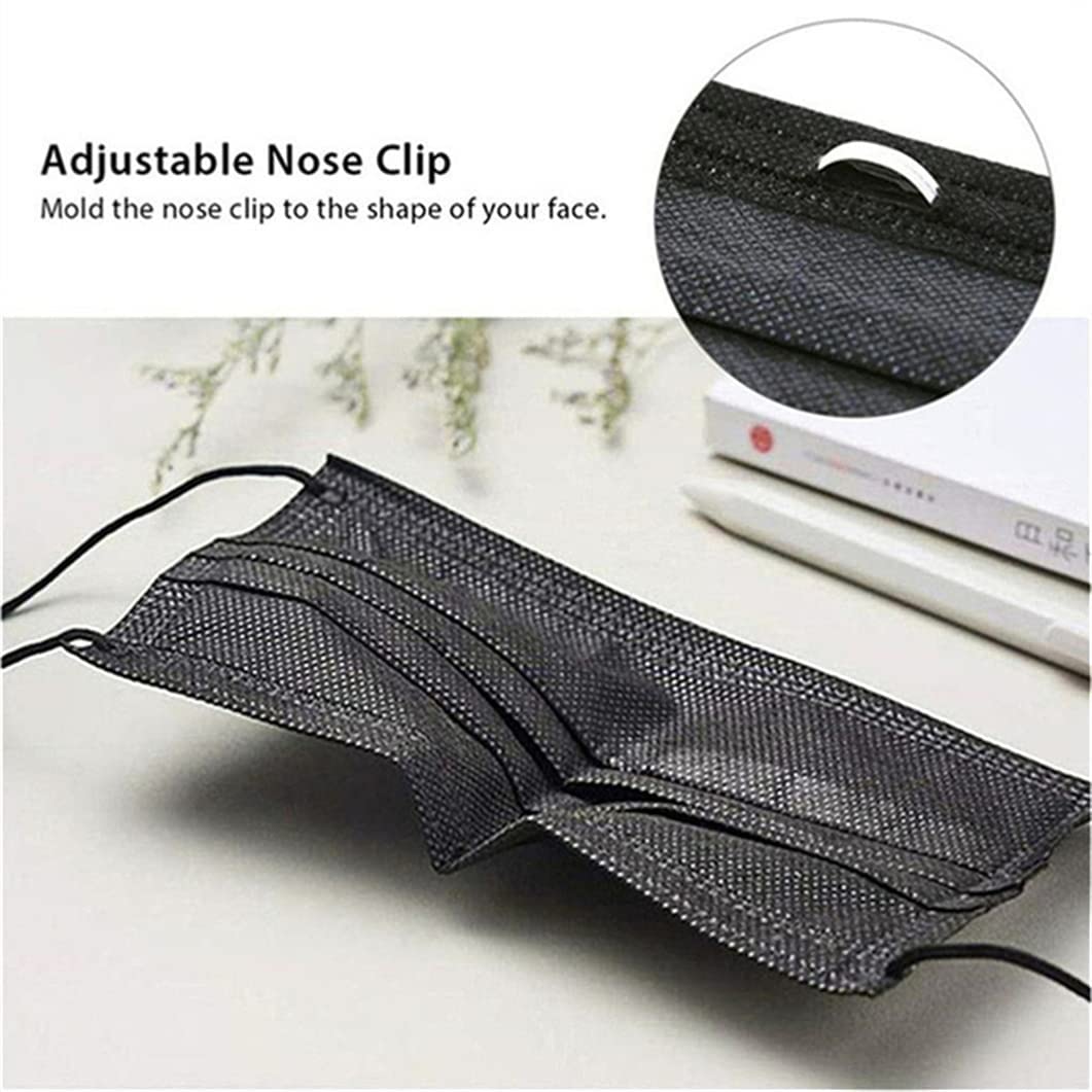 Black Face Mask 100pcs Disposable Masks Breathable 3 Layer Masks Mouth Cover for Adult Men & Women