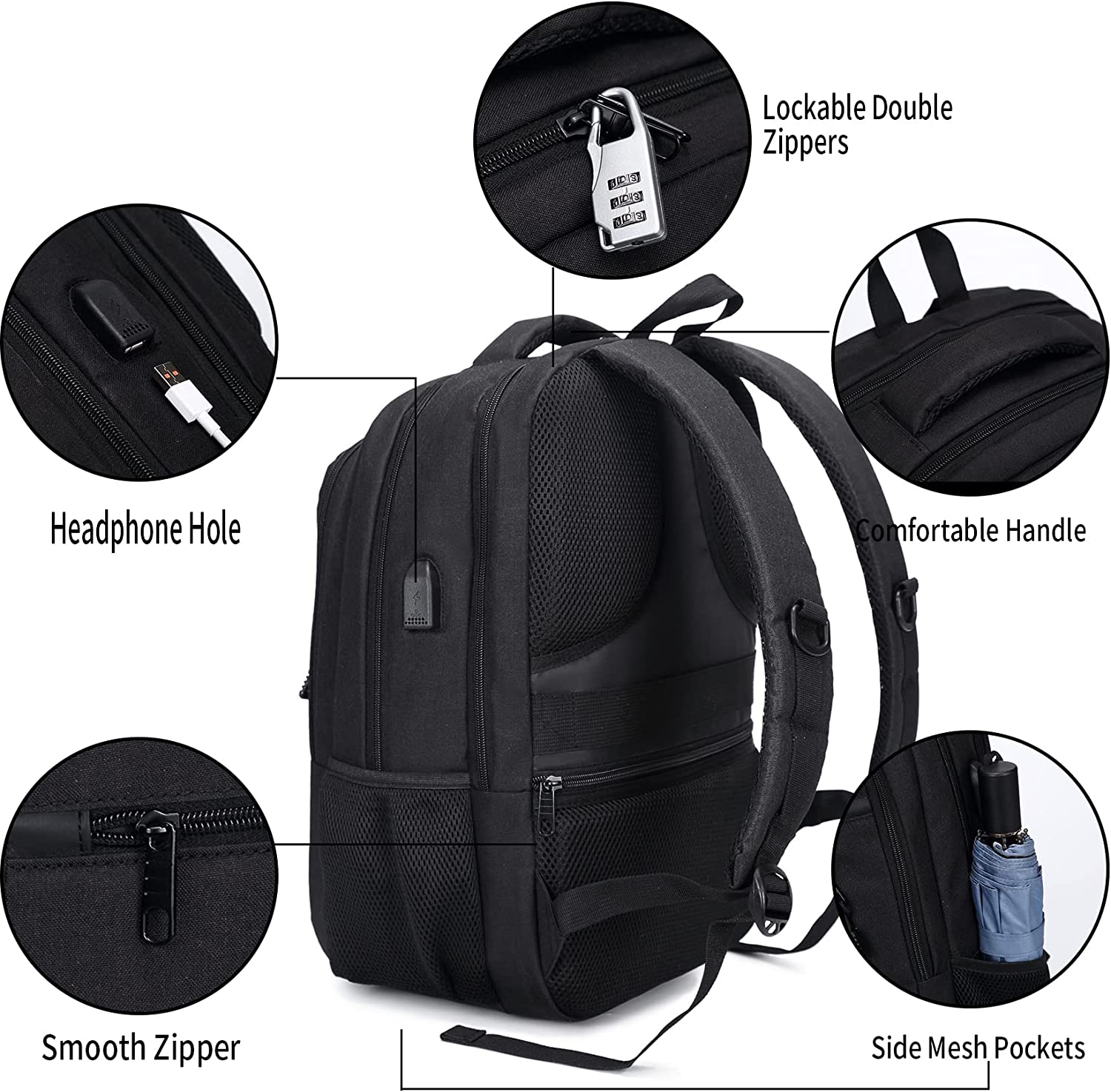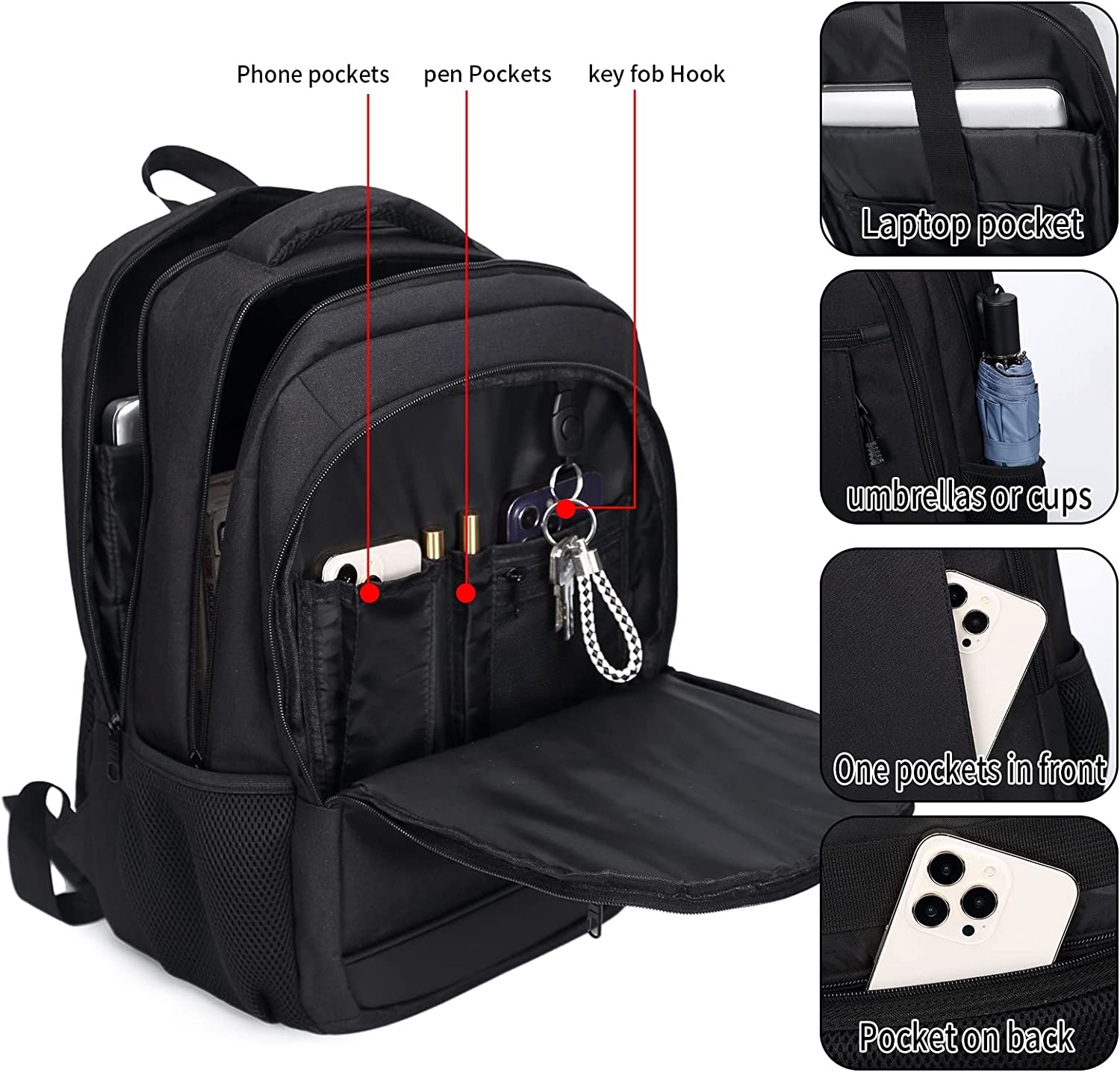 • LARGE CAPACITY & MULTIPLE POCKETS: Men travel backpack owns many independent pockets for large storage and organization for small items. 3 spacious main multi compartments with many hidden pockets can accommodate lots of stuffs like supplies, travel accessories, clothes, stationery, notebook, cord organizer, side deep zipper pocket for easy access essentials, side elastic net pockets conveniently hold travel gear umbrellas or water bottles.