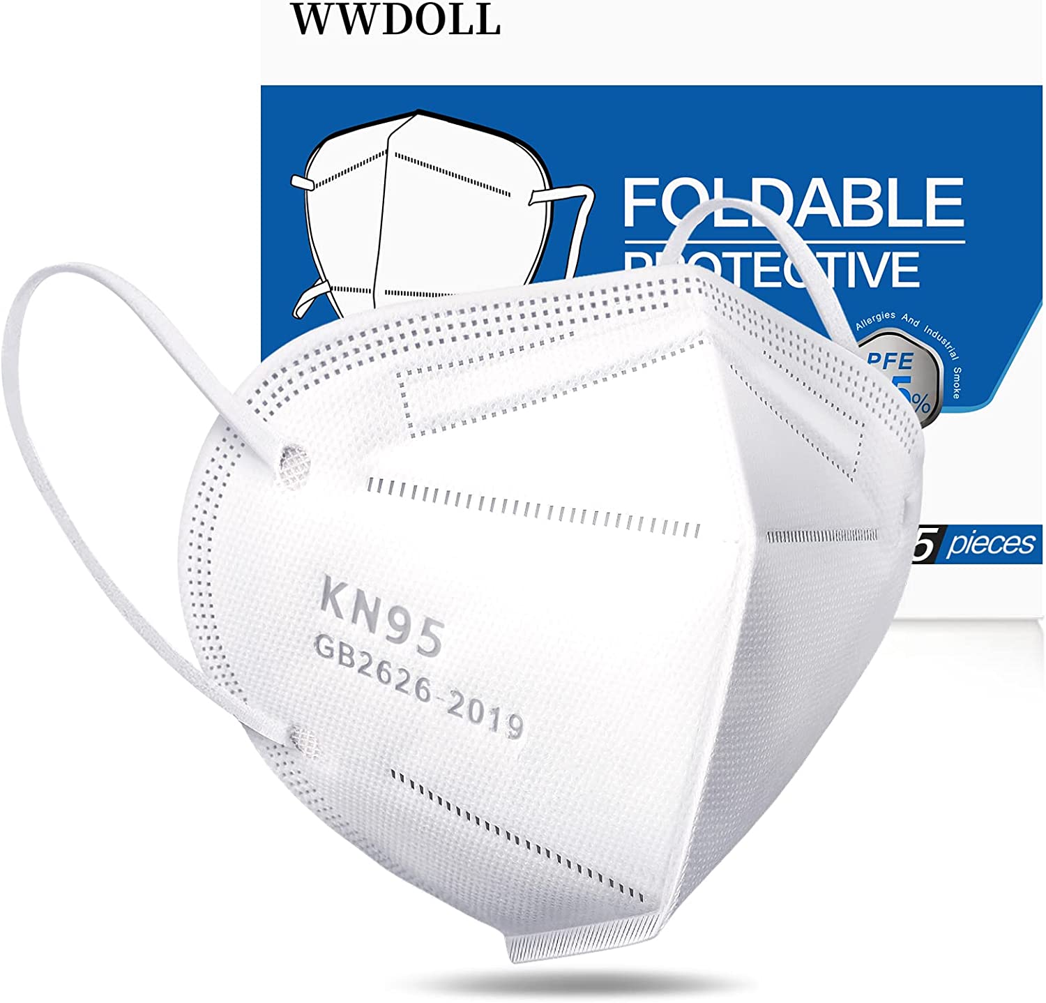 5-Layer Face Mask : WWDOLL 5-ply KN95 face mask is protective and high filter efficiency. The outermost 1 layer non-woven fabric can filter large particles, middle 2-layer melt-blown fabric can block more than 95% particles, 1 layer hot air cotton can filter pm2.5 and the innermost 1 layer non-woven fabric is skin-friendly and softer that give you the comfortable usage experience at the same time it protects your breath with high filter efficiency.