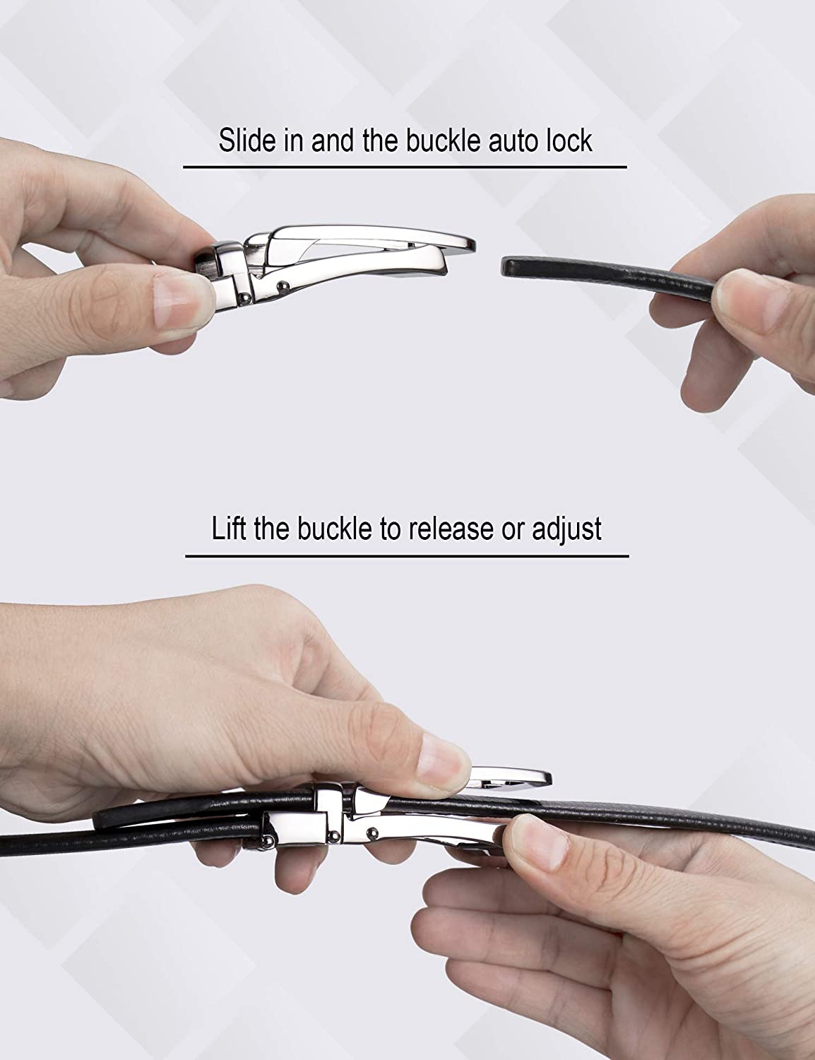 • [Easy To Use]: Slide in and the buckle Auto Lock. Push the lever on the side of the buckle to release or adjust. Quite easy to tighten and release. Simple, smooth and sleek!