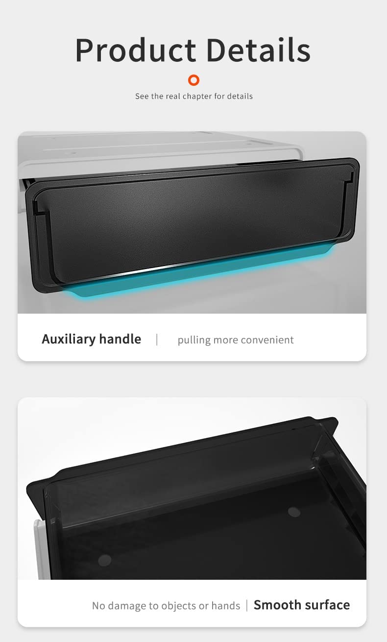 【Self Adhesive & Easy to Install】With four strong-power self-adhesive tapes, this under desk drawer organizer is easy to mount to the clean surface tightly and will not drop-off. Screws are also included if the tapes do not work.You can choose a suitable location, choose a smooth panel, and paste our drawers.Please hot the tape with a hair dryer first or use some degumming agent and rip it off if you want to remove the drawer.