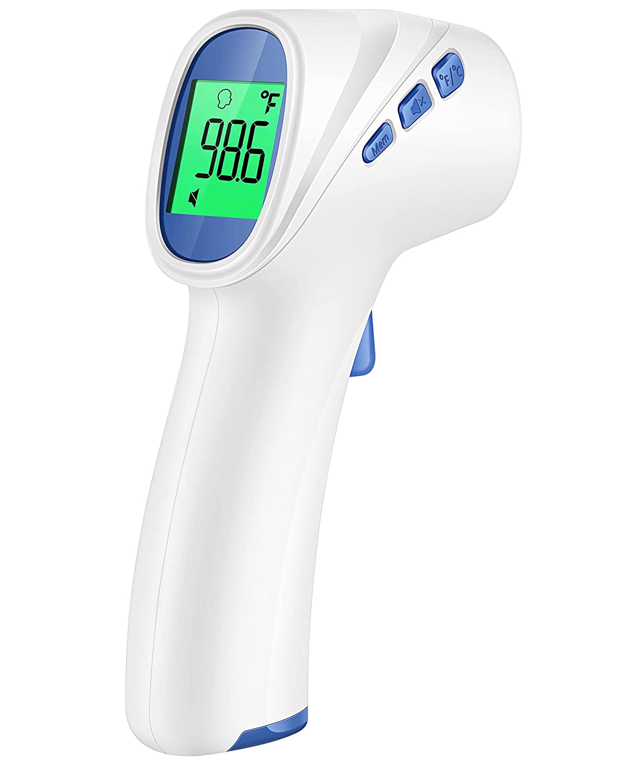 No-Contact Thermometer: This touchless thermometer provides contactless accurate temperature reading that helps you avoid cross infections. No need to clean the thermometer after every use!