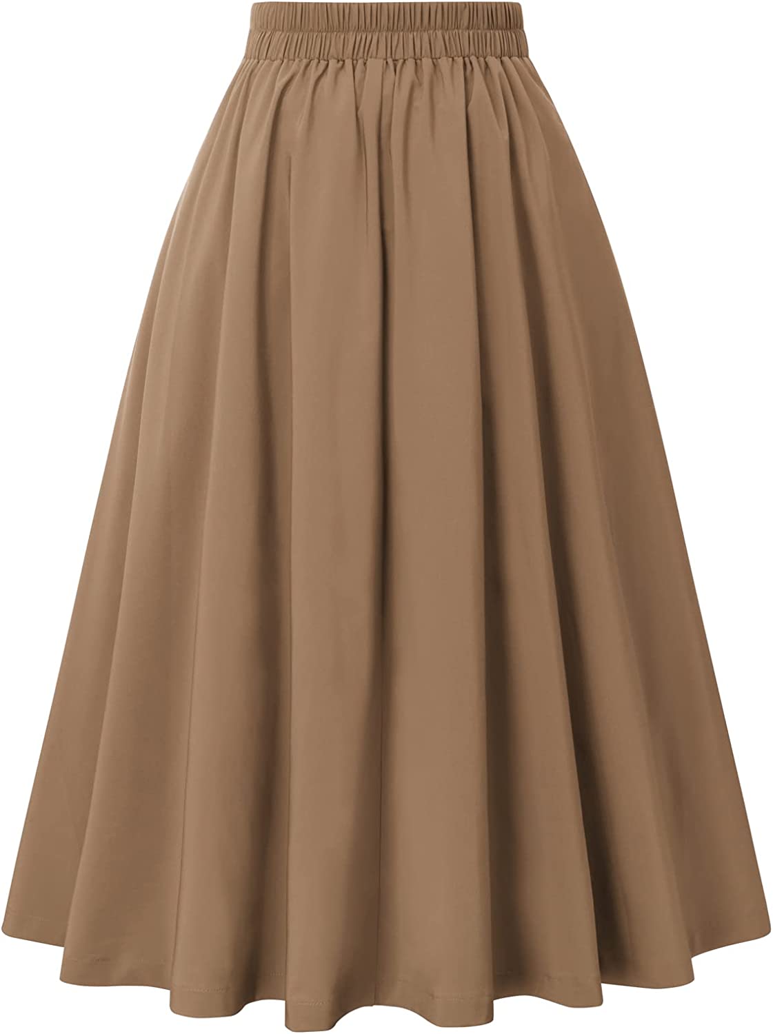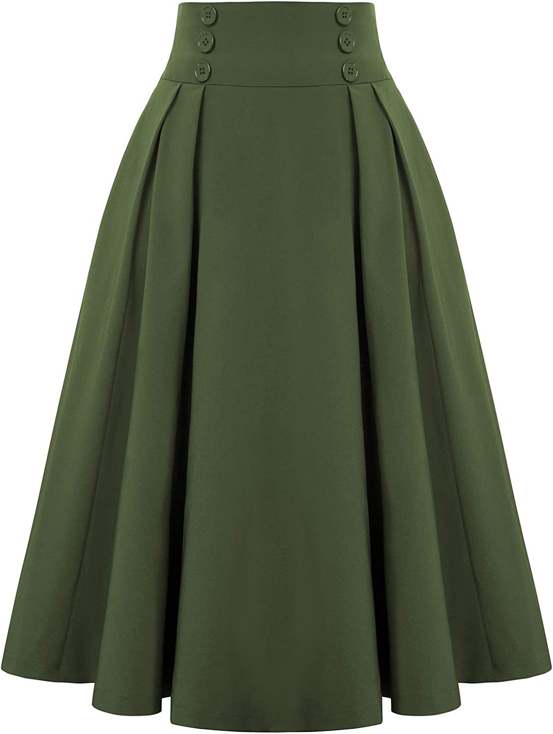 Features:Pleated skirt midi, flared A line silhouette, elastic waist,6 decoration buttons, with 2 open pockets