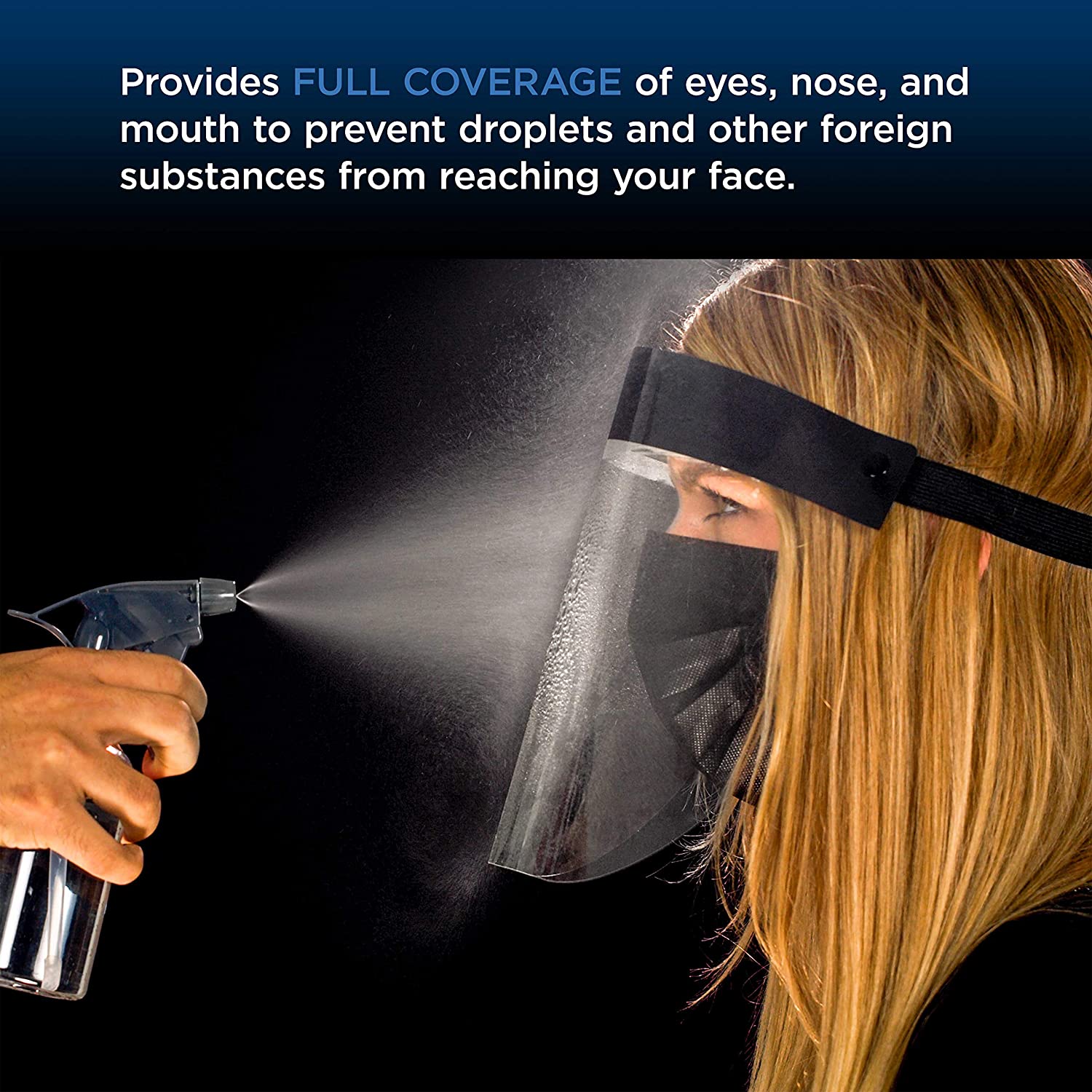 Salon World Safety Black Face Shields - Ultra Clear Protective Full Face Shields to Protect Eyes, Nose and Mouth - Anti-Fog PET Plastic, Elastic Headband - Sanitary Droplet Splash Guard (Pack of 4)