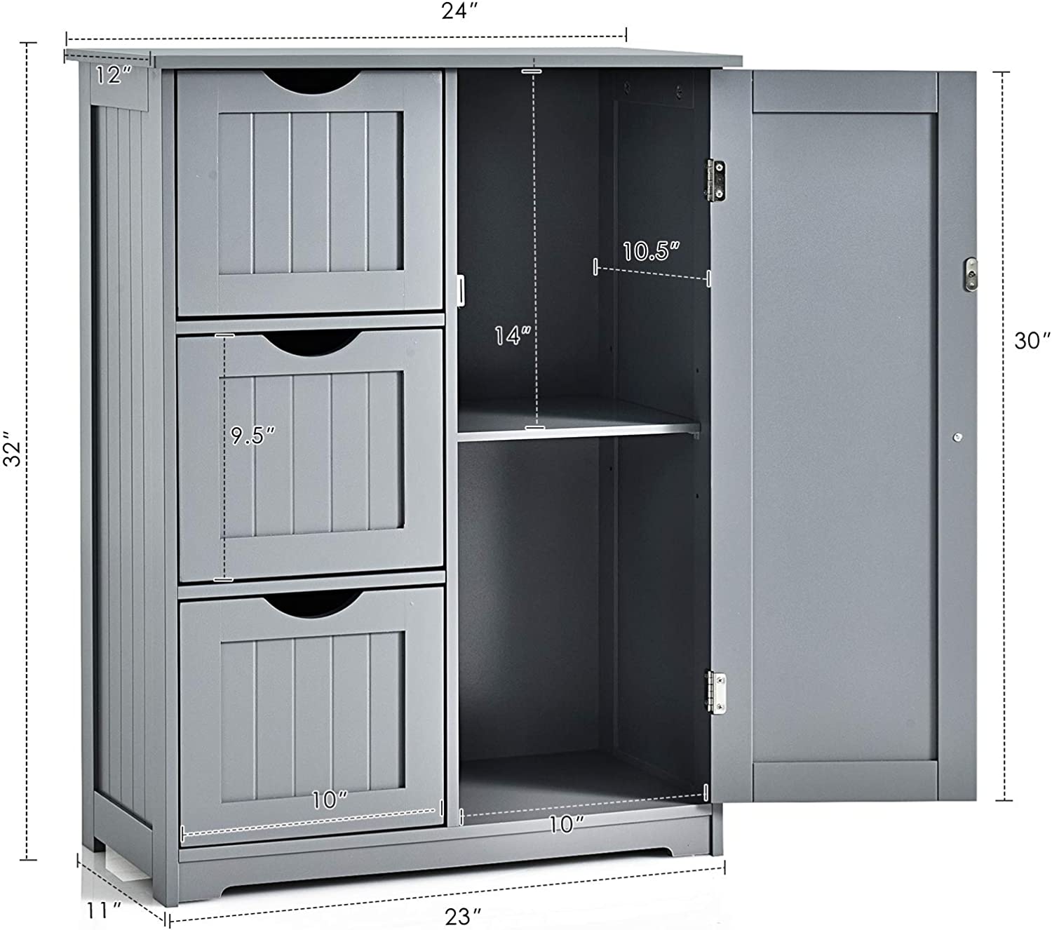 Large Storage Space: Comes with 3 drawers and a cupboard, this storage cabinet will provide spacious space for your items such as toys, books and bottles. And the top of cabinet can display decors. In addition, the door is equipped with magnetic snap to prevent accidental opening.