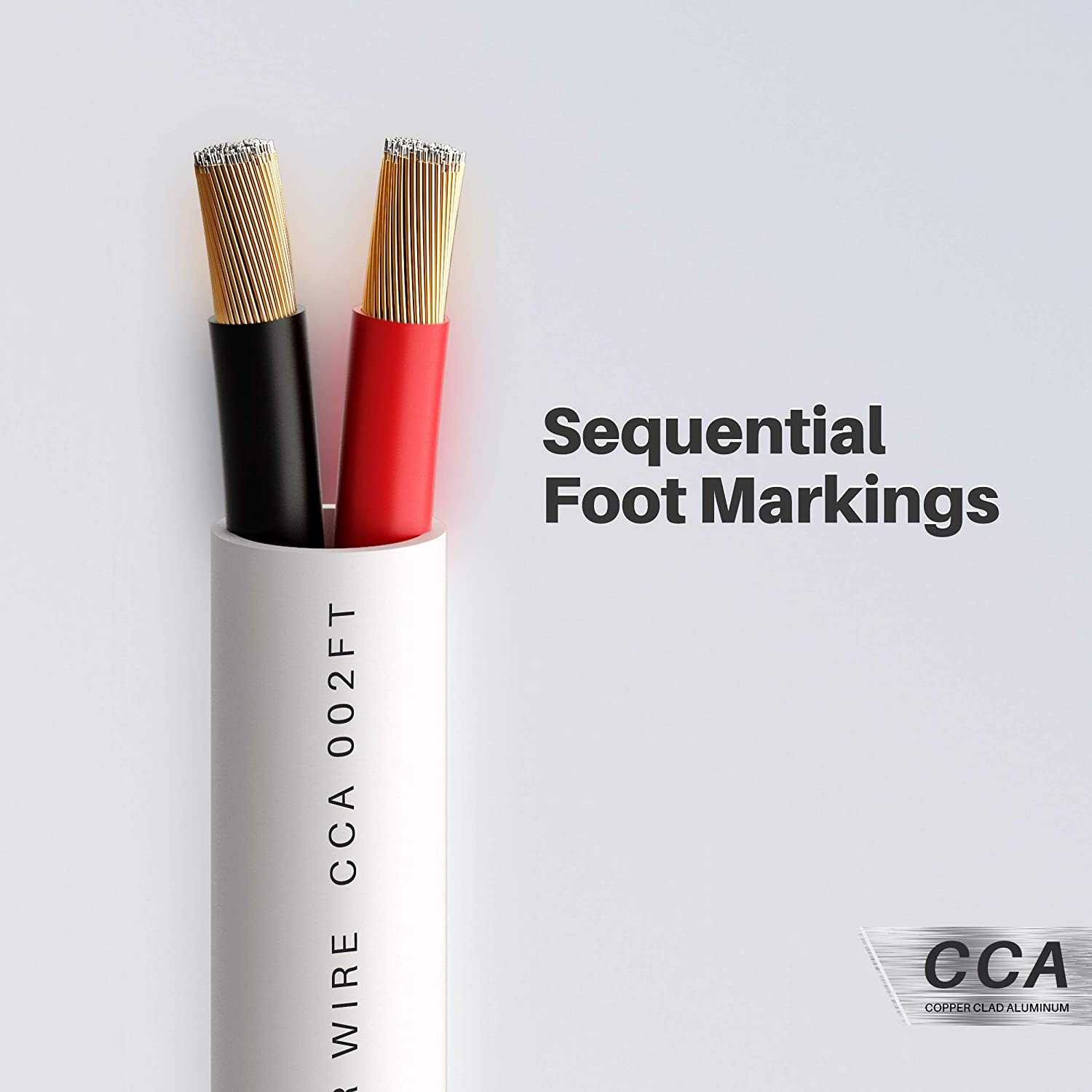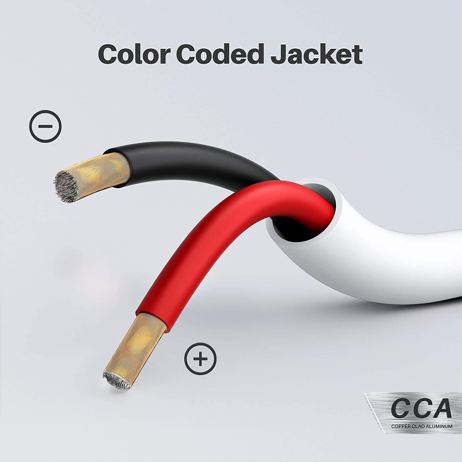 COPPER CLAD ALUMINUM WIRE (CCA) - Solid bulk speaker wires made of CCA are copper clad wire construction for high quality sound. GearIT CCA Speaker Cables provide true surround sound and high end audio sound wire experience without breaking your budget.