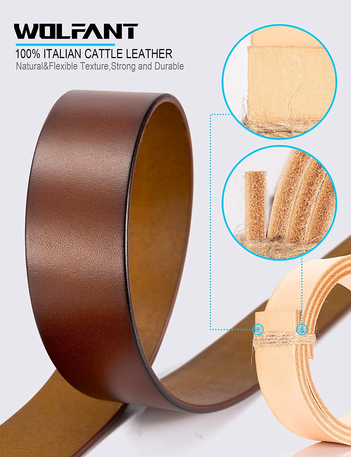 WOLFANT Full Grain Leather Belt for Men,100% Italian Real Solid Leather Casual Belt for Jeans