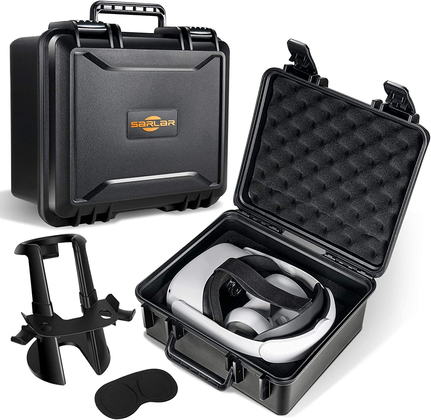 SARLAR Hard Carrying Case for Oculus Quest 2 Official Elite Strap Safe and Portable Protection, Travel Case Storage VR Gaming Headset and Touch Controller Accessories, Included VR Stand and Lens Cover