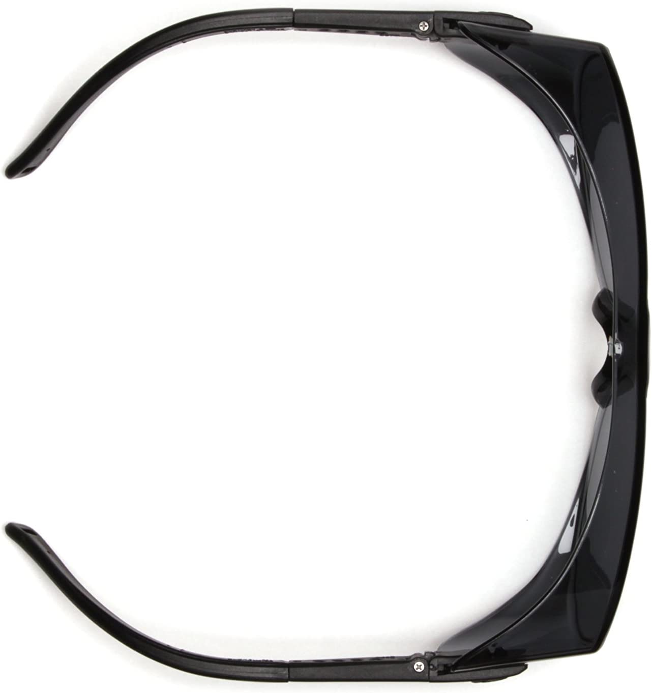 The Pyramex OTS (Over the Spectacle) safety glass is designed to fit over today's prescription eyewearThe OTS over glasses safety glasses offers single lens protection that encapsulates the eye for superb protectionThe lightweight nylon temples adjust for length and pitch for adjustingLenses are coated for superior scratch resistanceLenses provide 99% protection against harmful UV rays.