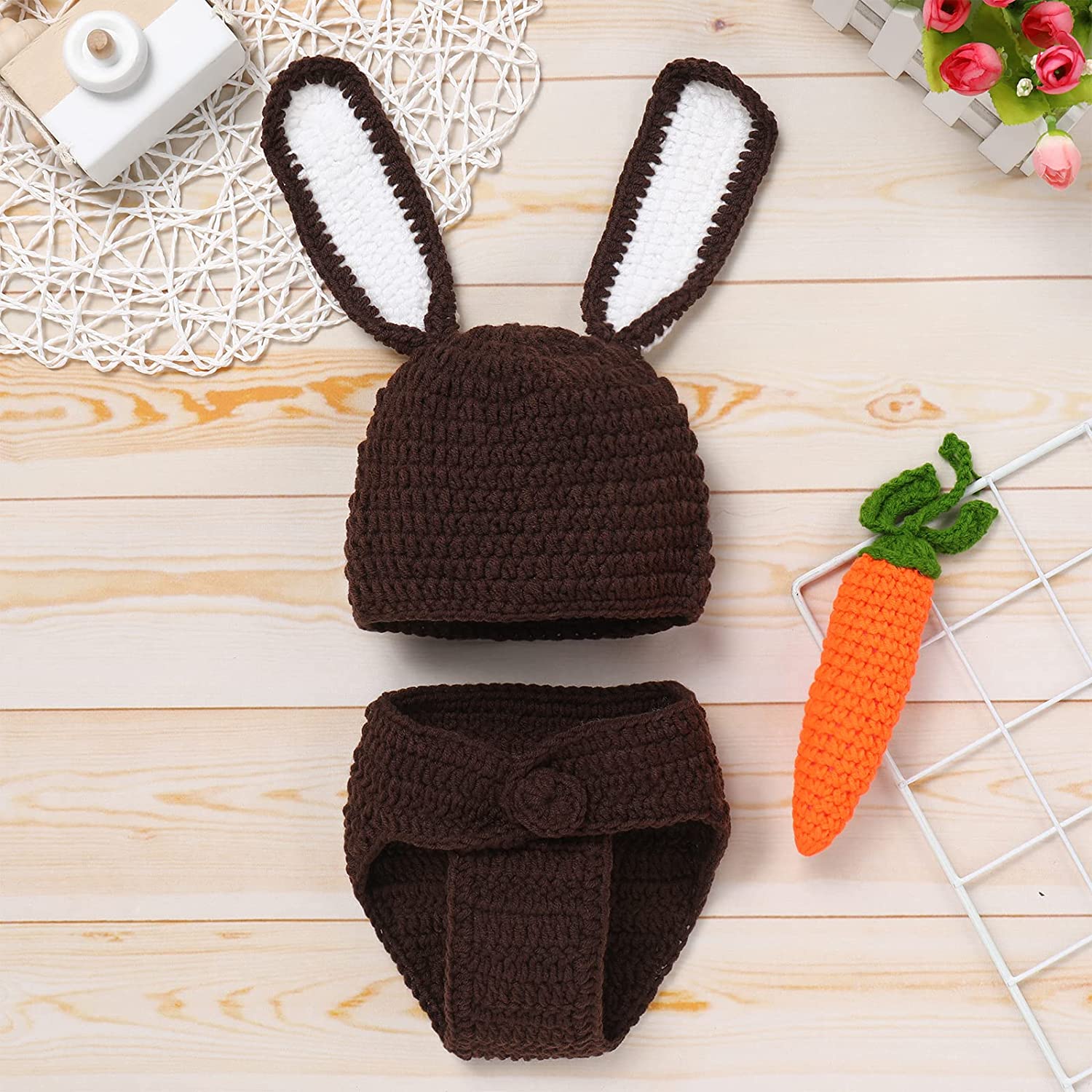 ♛【Easter Bunny Photo Shoot Costume】Newborn baby boys girl 1st Easter bunny photography props costume, fancy photo shoot outfit set includes Diaper Pants + Beanie Hat with or without Carrot. Super cute striped crochet-knit baby boy girl outfit set for first Easter photo props. Adorable rabbit newborn boy bunny outfit 1st Easter photoshoot outfit dress up clothing, great as newborn party costume, newborn photos, cake smash 1st birthday outfit set, Christmas outfit, playwear, baby photography prop;