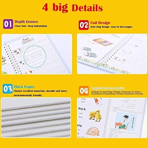 【Easy to Practice】:The copybooks have three-dimensional grooves template design,which is convenient for kids to master writing.