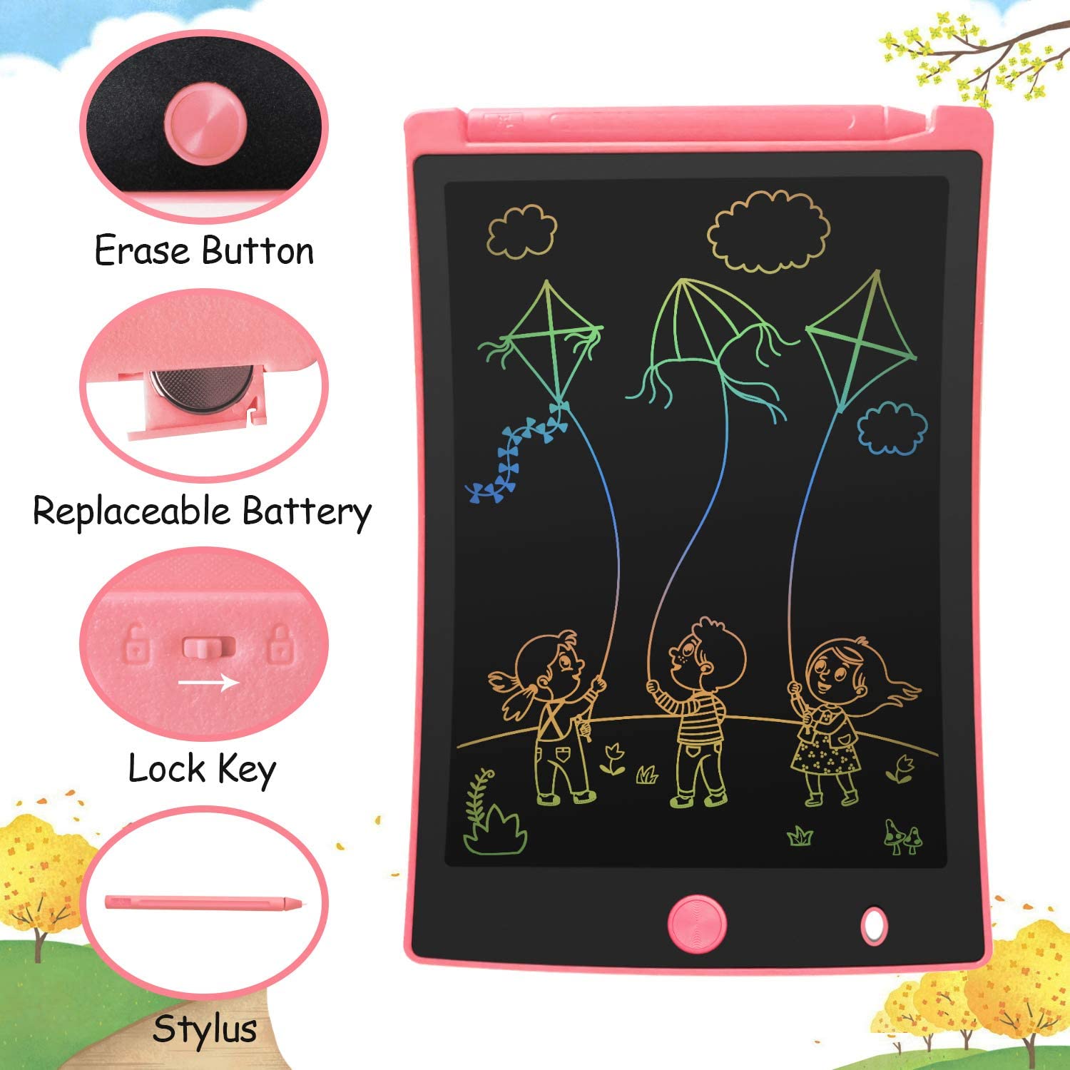 - EYE PROTECTION -- The kids' electronics writing tablet adopt lcd screen, no radiation, no glare, Its safe and comfortable when children use for a long time. Your kids can freely release their natural instincts