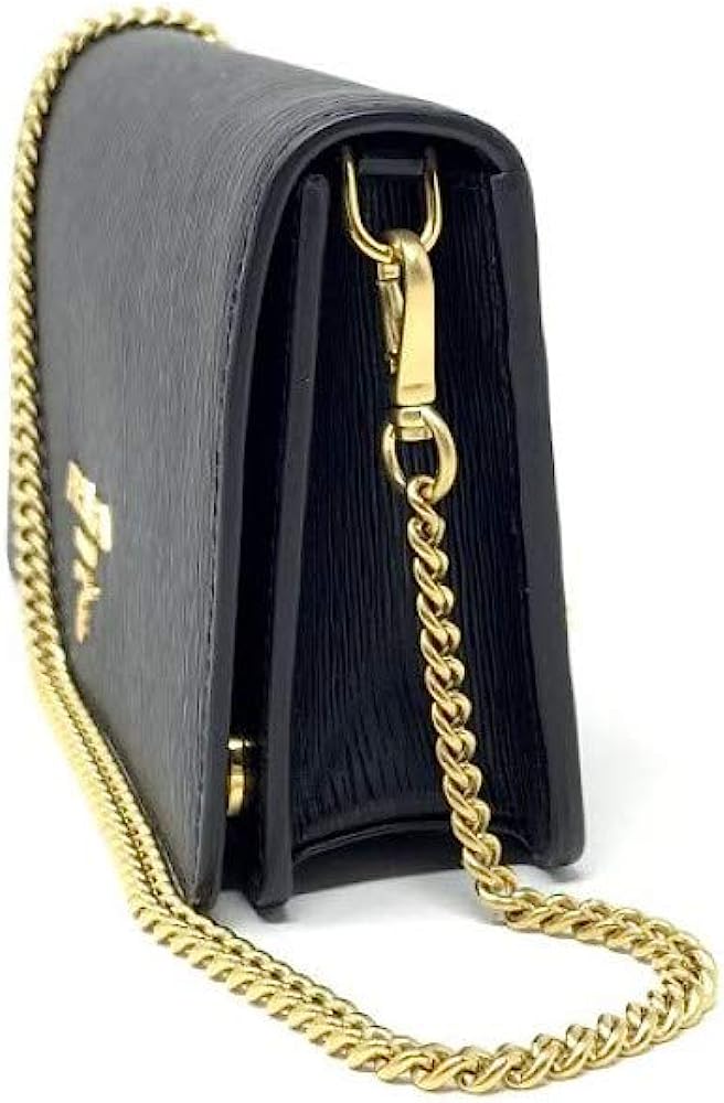 Leather Imported Model: 1BP021 Brand: Prada Black Nero. Vitello Move I Leather. Small Miniborse Crossbody/ Chain wallet. Gold Hardware with front triangle Prada logo. Magnetic Snap Closure. Country of manufacture: Italy Measurements: 7.5" x 2" x 4" (LWH) Strap Drops: 22.5" Includes Certificate of Authenticity and Dust Bag