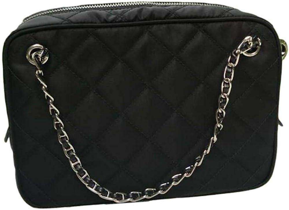 • This Prada bag is the perfect quilted black bag for any look. It features the silver Prada triangle logo and contains an adjustable crossbody strap and chain handles. The top zipper opens up to a black jacquard fabric lined interior with a zip pocket and slip pocket. Grab this beautiful piece before it's gone!