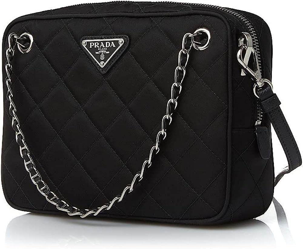 Prada Womens Bandoliera Black Tessuto Nylon Quilted Medium Crossbody Bag