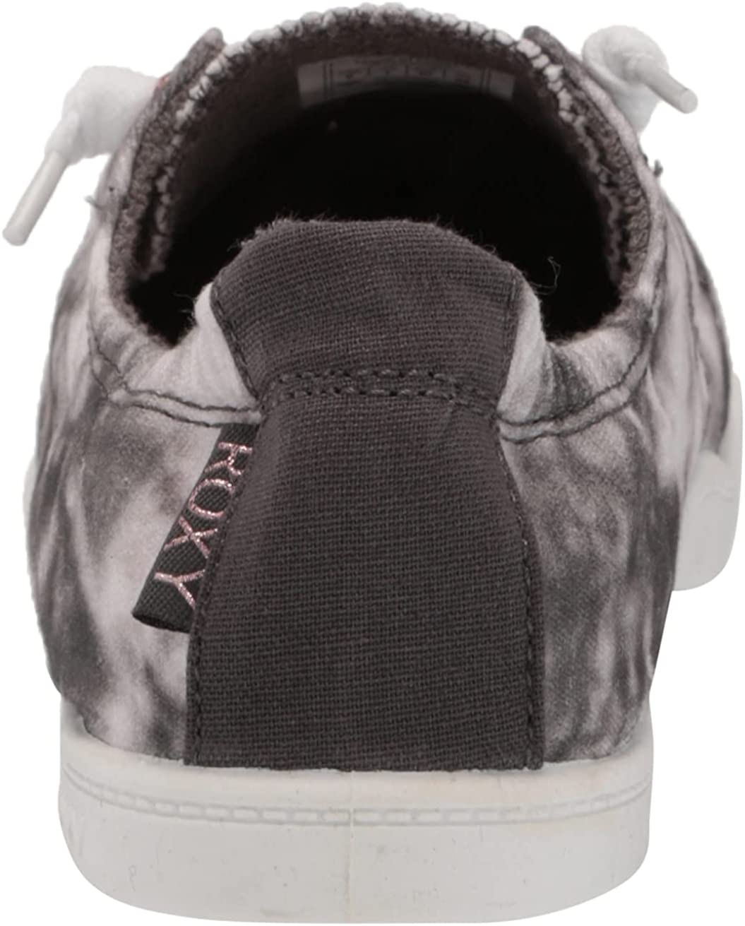 Shoes for women constructed with a textile upper, elasticized top line with embroidered or printed heel detail and Roxy flay label. Memory foam padded canvas insole with graphic print terry cloth lining and flexible tpr injected outsole with molded arch detail outsole.