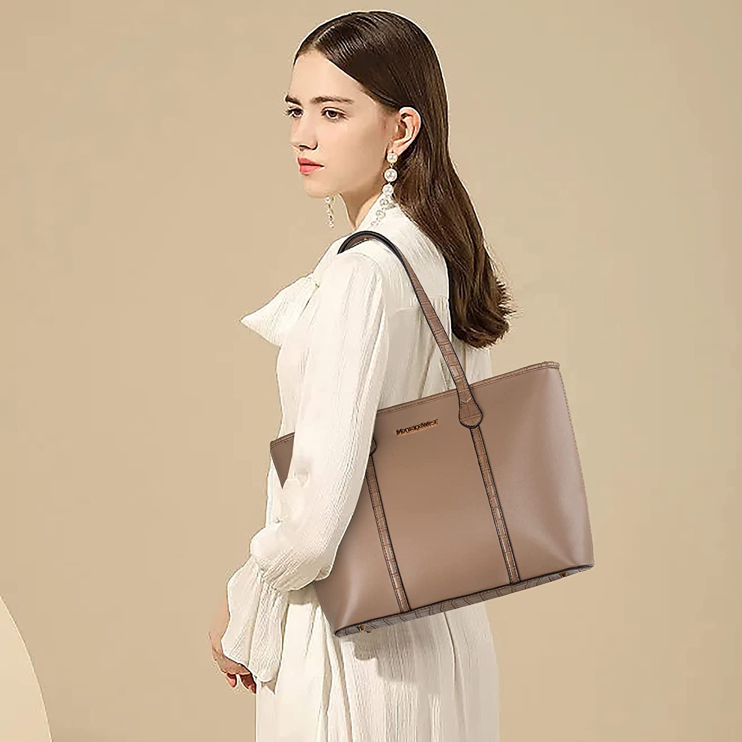 • MATERIAL: Crafted from buttery smooth PU leather (light-weight distressed-look) with soft fabric lining. This classic handbag is the effortlessly Tote you'll want to have and rely on for the rest of the time. It's simple yet elegant and spacious enough to carry your laptop or iPad.