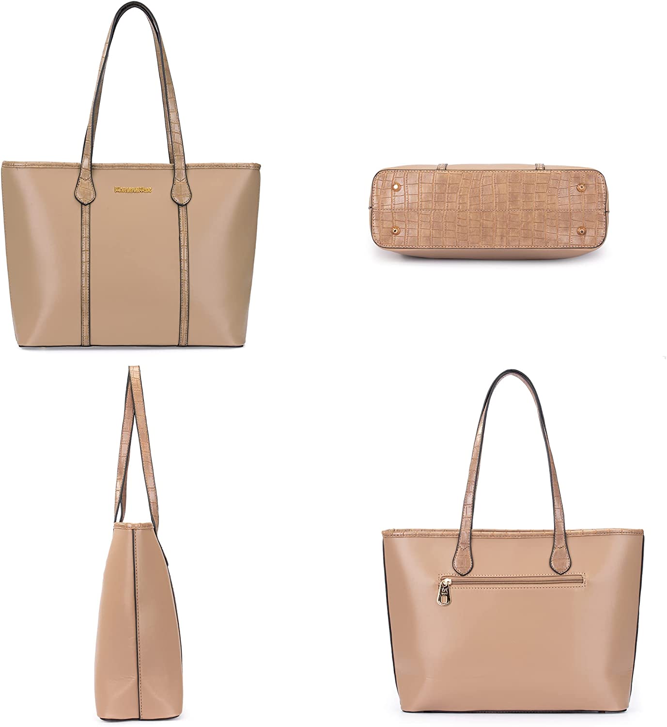• POUCH INCLUDED: It comes with a matching Pouch with zipper closure that can be carried by itself or hung from the tote with the help of a gold-tone chain keychain. Perfect for keeping your smaller necessities in place.