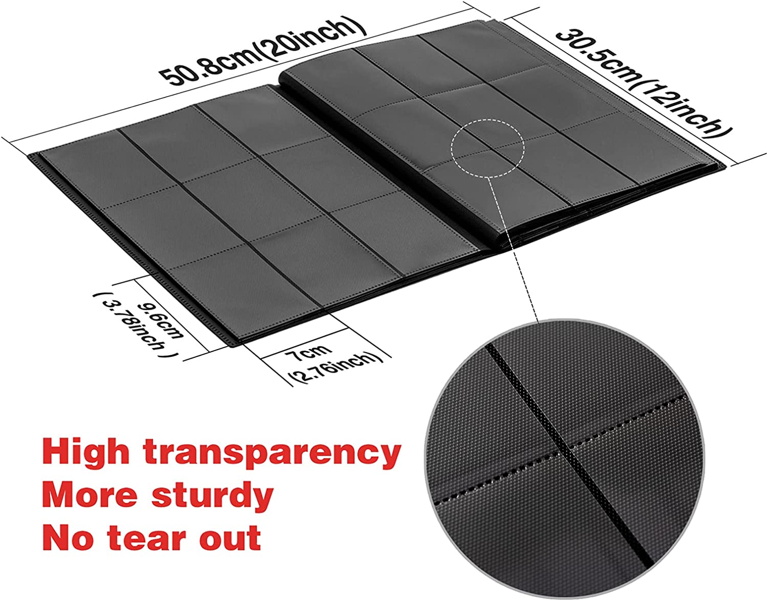 Holding 360 CARDS - 9 pockets double-sided trading card binder, holds up to 360 trading cards with 20 pages total. This product does not contain cards. More pages cannot add.