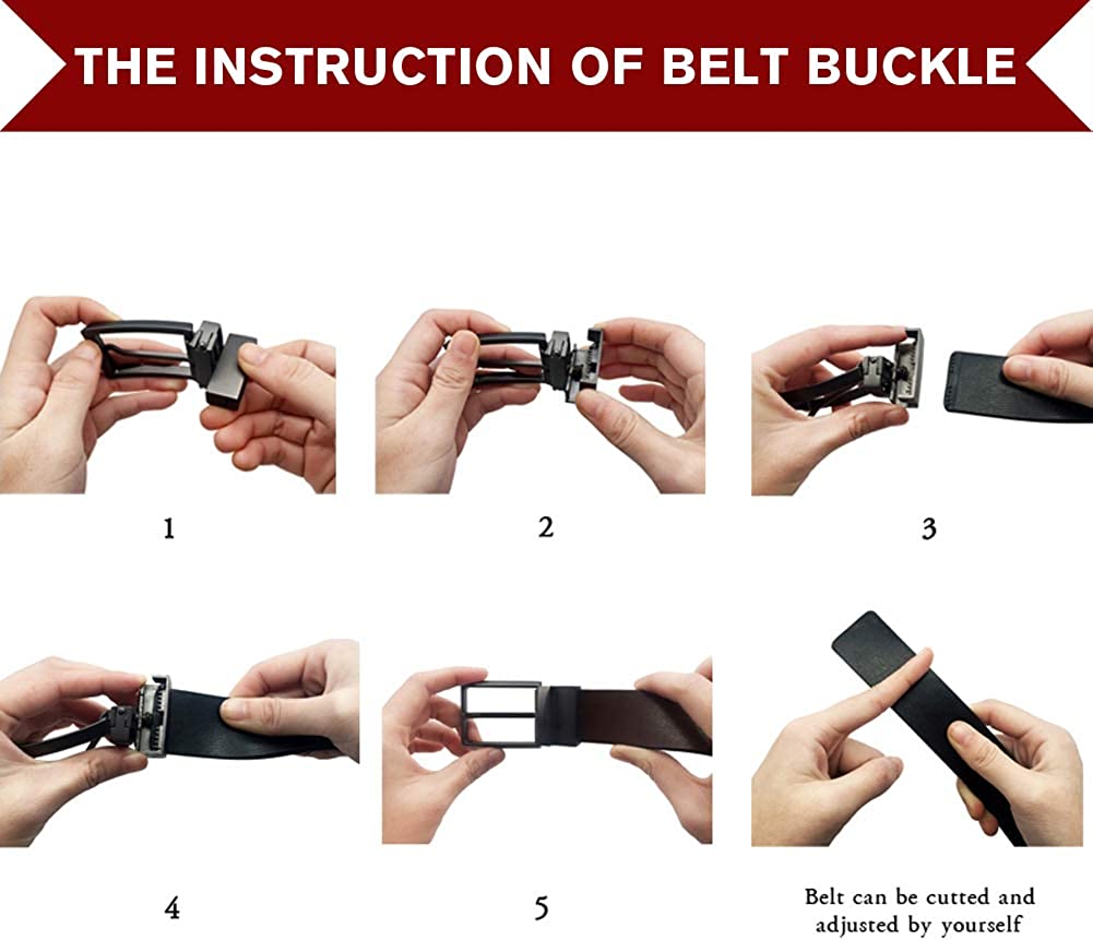 • How to Reverse: The construction has a swivel buckle to reverse with ease from one side to another. One belt reverse for 2 sides. Stretch forward the buckle by pulling off a little bit from conjunction area, and rotate to your desired color side. You can overturn the buckle easily without taking it off from the belt.